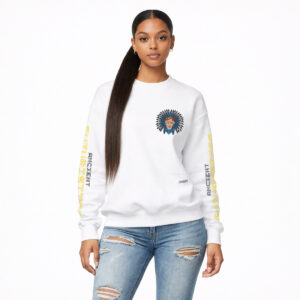 The symbolism is intentional. Feathers represent earned wisdom and spiritual connection across many Indigenous traditions. The roses represent resilience and beauty thriving in resistance. The cybernetic design hints at something deeper: technology rooted in sacred geometry rather than cold machinery. This shirt is not costume. It’s mythology visualized.
