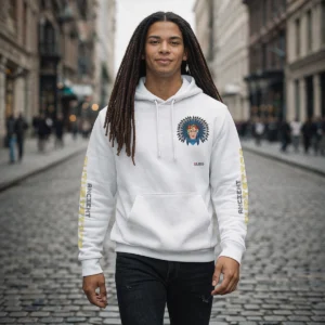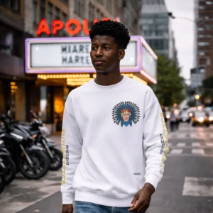 The visuals you’re seeing are not film stills. They are front chest logo T-shirts, back graphic statement shirts, sweatshirts and hoodies carrying full narrative prints and accessories extending the symbolism. Each piece acts like a wearable artifact from the film’s universe. Together, they form a collection that allows the audience to embody the mythology before the movie even premieres. You don’t just watch ANCIENT FUTURISTICS, you wear it.