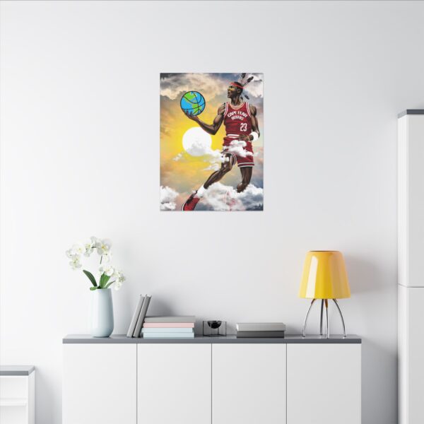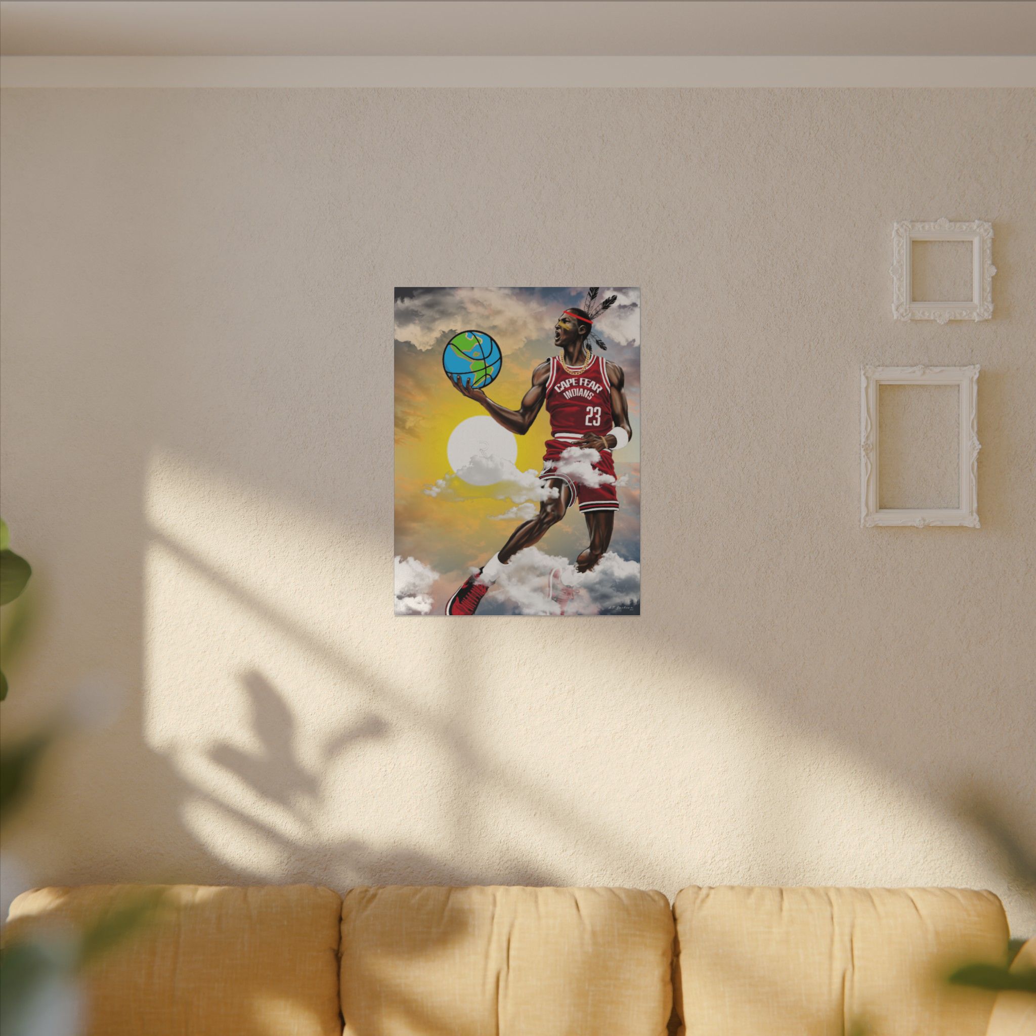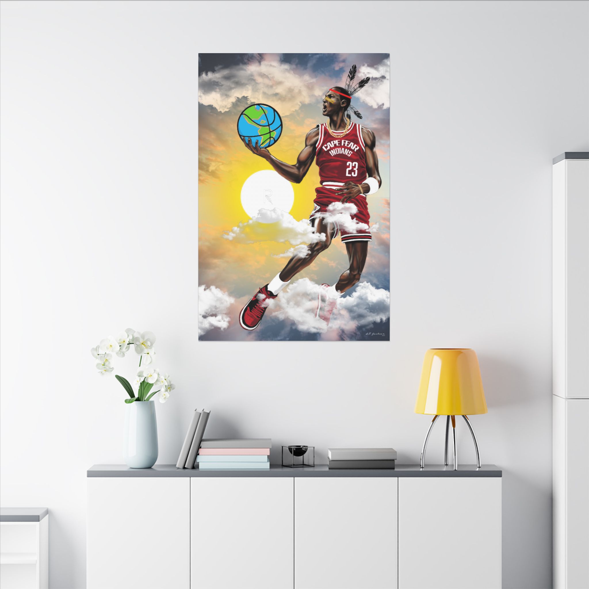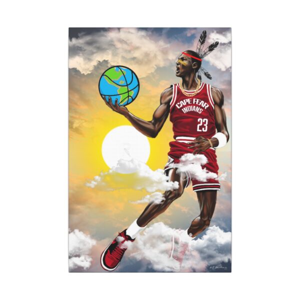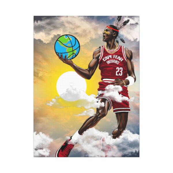 Introducing BLACK CAT COLDAYZ, a remarkable tribute canvas print to the esteemed Cape Fear Indians of North Carolina. This stylish artwork features a captivating design showcasing Michael Jordan as an American Indian, palming the Earth like a basketball, which has been his effect on culture! Jordan family roots hail from the region that symbolize the rich culture and historical significance of the Cape Fear Indians. Hang it proudly to express your admiration for the Cape Fear Indians and their enduring legacy. With BLACK CAT COLDAYZ, we’re not just selling art; we’re weaving tales of heritage and celebrating the stories that shape our shared history. Embrace the opportunity to honor the Cape Fear Indians and their cultural contributions, showcasing your appreciation and respect through this exceptional artwork.