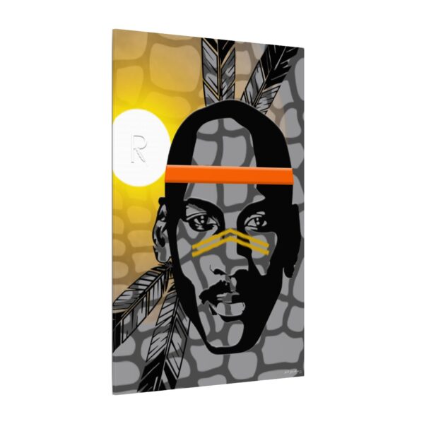 The BLACK KAT in the bright light of the sun on a alligator print background, a portrait emerges of a man whose face is known across the world: Michael Jordan, but not as the basketball legend everyone recognizes. In this image, he wears the sacred headdress of the old Cape Fear tribe, adorned with feathers and symbols passed down through generations. His gaze is sharp, focused, like that of a hunter tracking his prey through dense forest. His face carries the wisdom of ancestors, the quiet power of a leader who knows his path. The nickname BLACK KAT has always followed him, but in this story, it carries a deeper meaning. Long ago, among the Cape Fear Indians, the Black Kat was more than just a name. It was a title given to the chief of the tribe, a symbol of stealth, agility and unmatched strength. The Black Cat led his people with a combination of grace and fearlessness, a leader in times of both peace and war. In the portrait, Jordan channels the spirit of this ancient chief, embodying the essence of his heritage, a history rooted in leadership and resilience. Hang this canvas print up and enjoy it’s beauty.