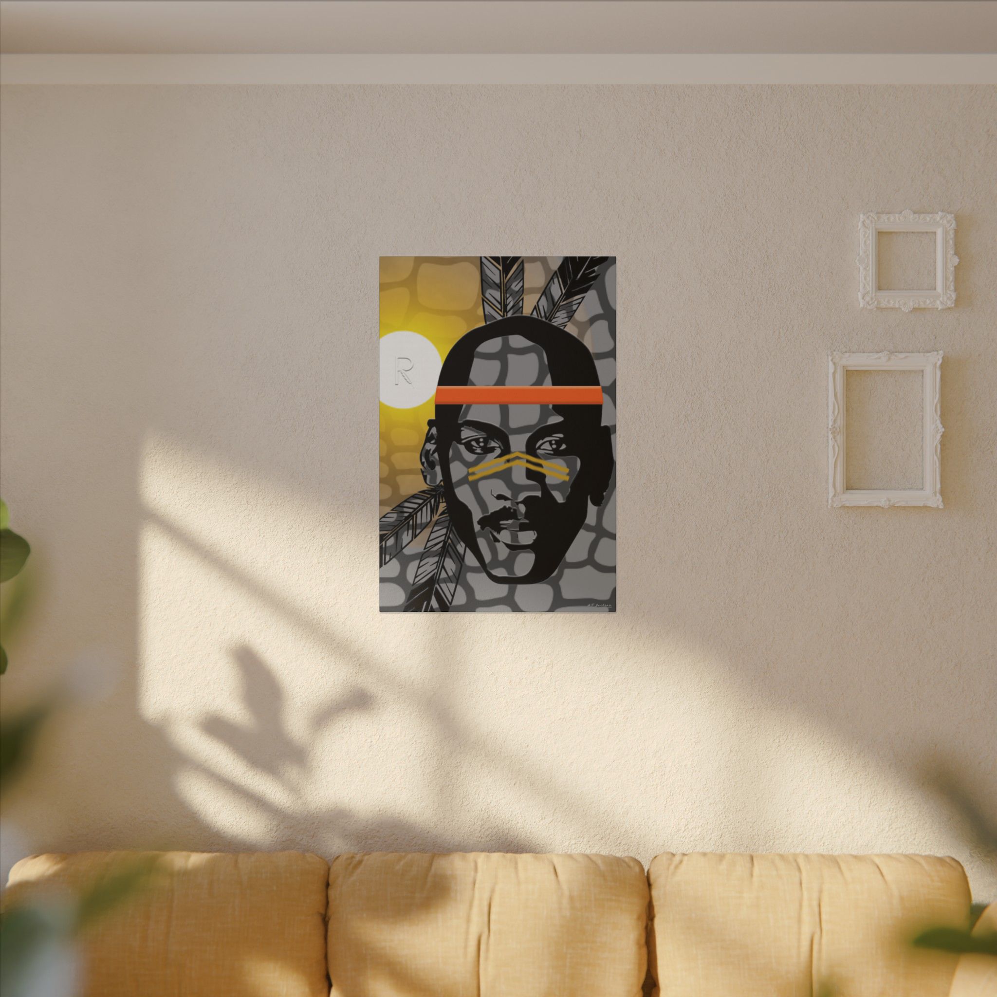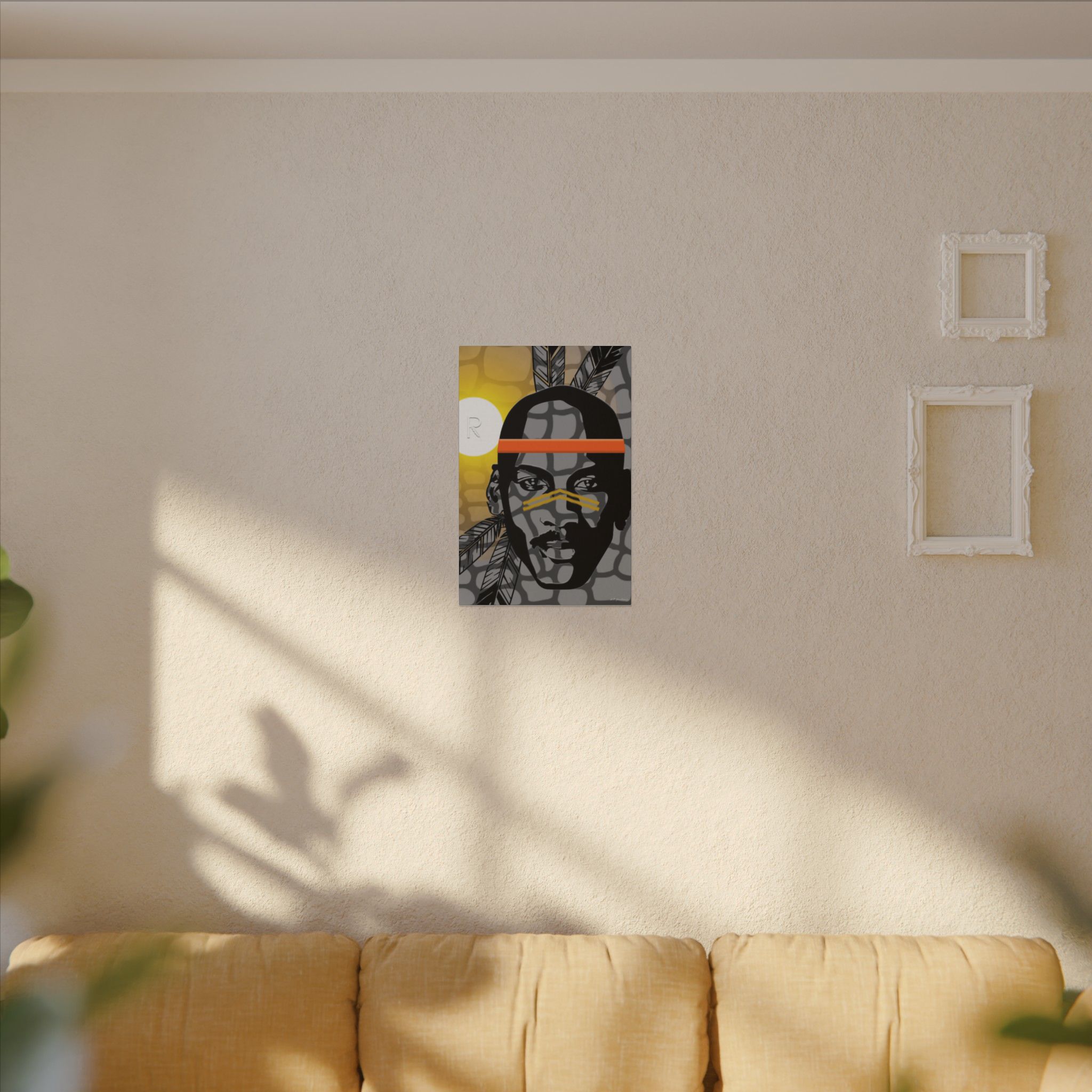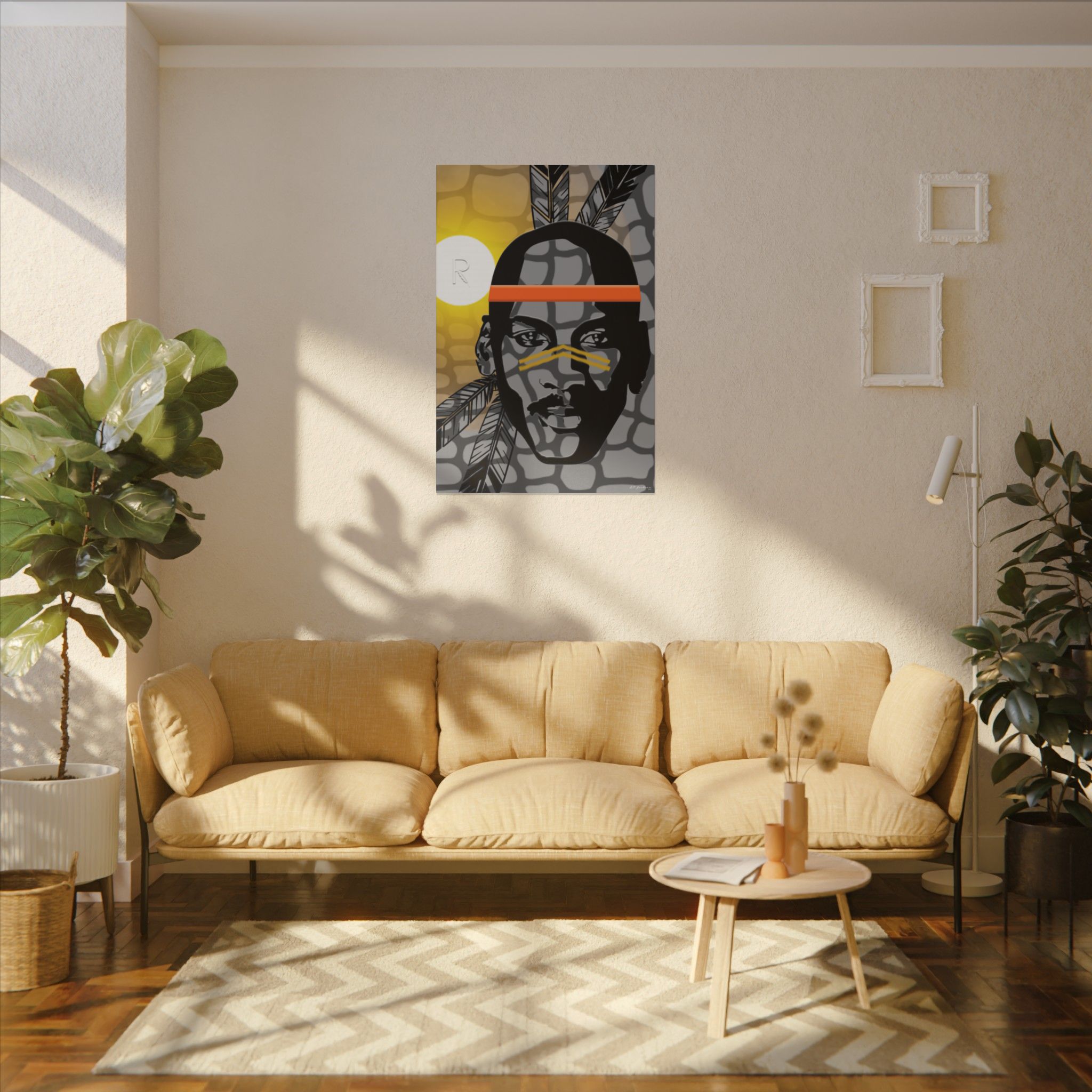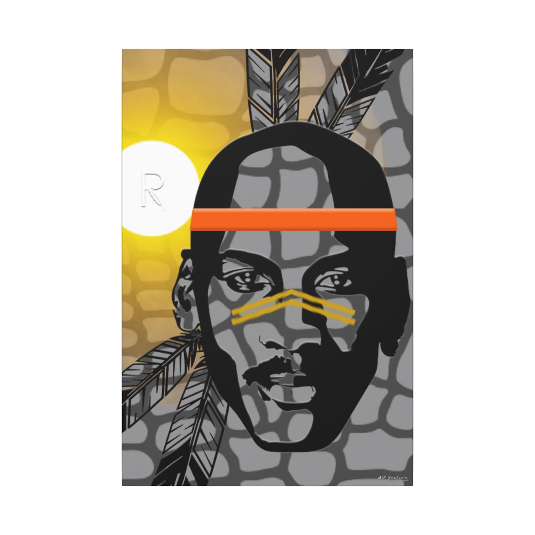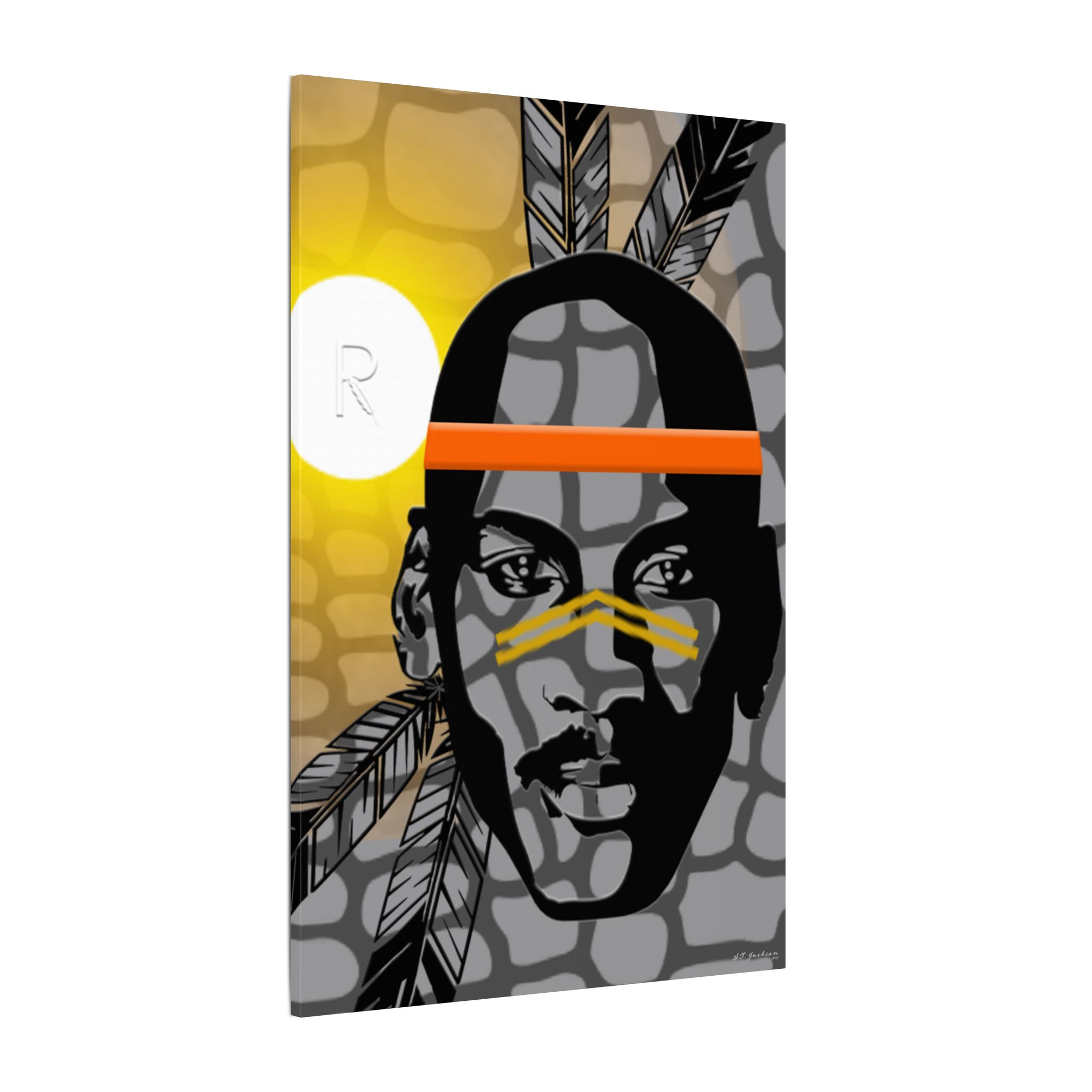 The BLACK KAT in the bright light of the sun on a alligator print background, a portrait emerges of a man whose face is known across the world: Michael Jordan, but not as the basketball legend everyone recognizes. In this image, he wears the sacred headdress of the old Cape Fear tribe, adorned with feathers and symbols passed down through generations. His gaze is sharp, focused, like that of a hunter tracking his prey through dense forest. His face carries the wisdom of ancestors, the quiet power of a leader who knows his path. The nickname BLACK KAT has always followed him, but in this story, it carries a deeper meaning. Long ago, among the Cape Fear Indians, the Black Kat was more than just a name. It was a title given to the chief of the tribe, a symbol of stealth, agility and unmatched strength. The Black Cat led his people with a combination of grace and fearlessness, a leader in times of both peace and war. In the portrait, Jordan channels the spirit of this ancient chief, embodying the essence of his heritage, a history rooted in leadership and resilience. Hang this canvas print up and enjoy it’s beauty.