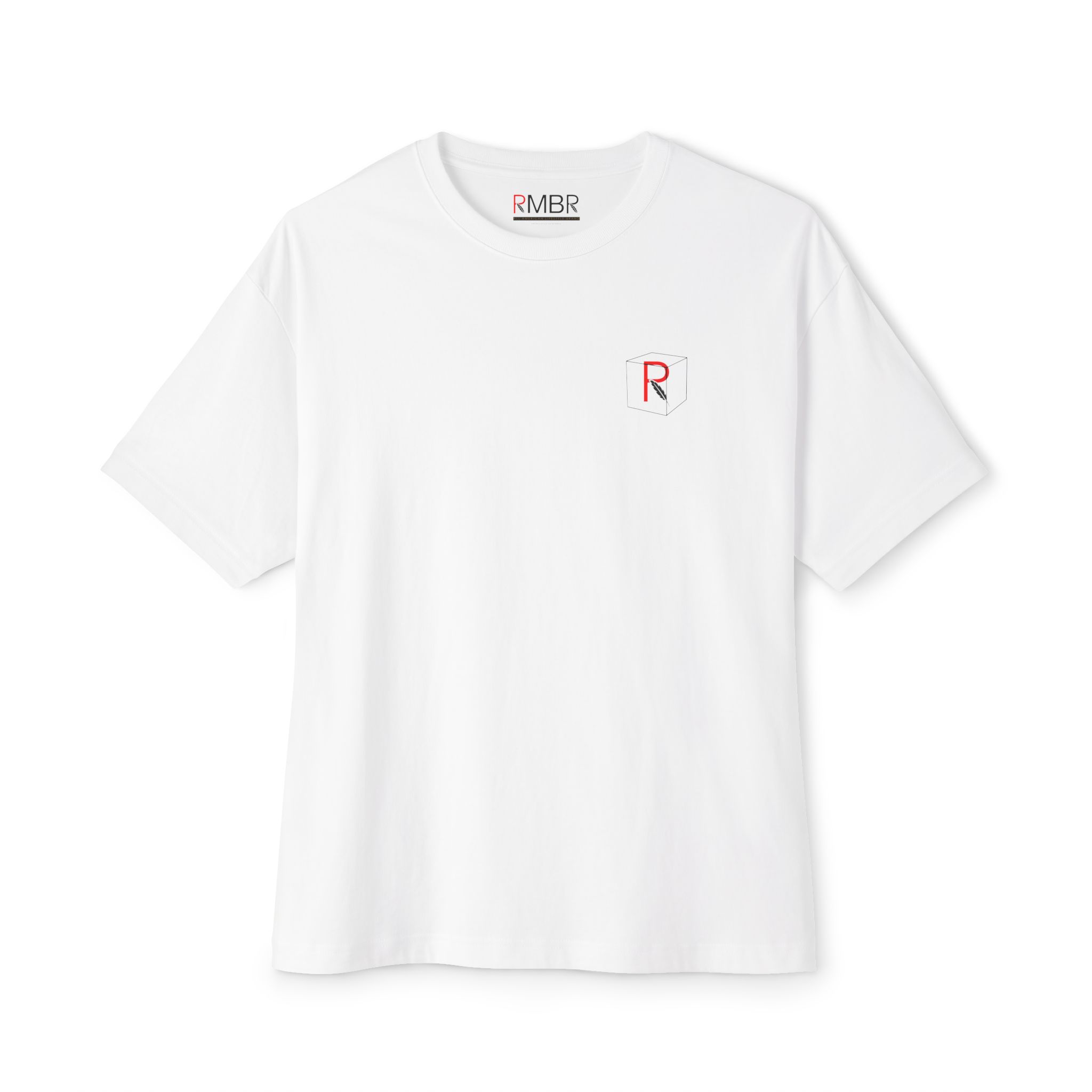 From the foundation of the Basics Collection comes the BOXED LOGO oversized T-shirt — where clean design speaks volumes. At its core sits the striking emblem: a bold red R with a black feather stem. Where simplicity meets significance. We put the R + Feather inside a box — but RMBR is about not being boxed in. The box equals the labels they gave you, society loves categories like Black, Indian, American, streetwear, political and spiritual, boxes are control mechanisms. They simplify people so they’re easier to manage. Our transparent 3D square behind the “R” feels like a label, a stamp and classification. But the feather disrupts, it leans, it overlaps and it doesn’t sit politely inside the frame. That’s not accidental energy, that’s rebellion! The feather breaks the boundary line, that’s the whole philosophy. You can’t fully box memory, culture, lineage, creativity or truth. RMBR is saying, “you can draw the frame — but we expand beyond it.” It means you were put in a box, you stepped outside of it and now you control the frame.