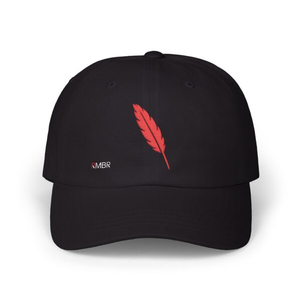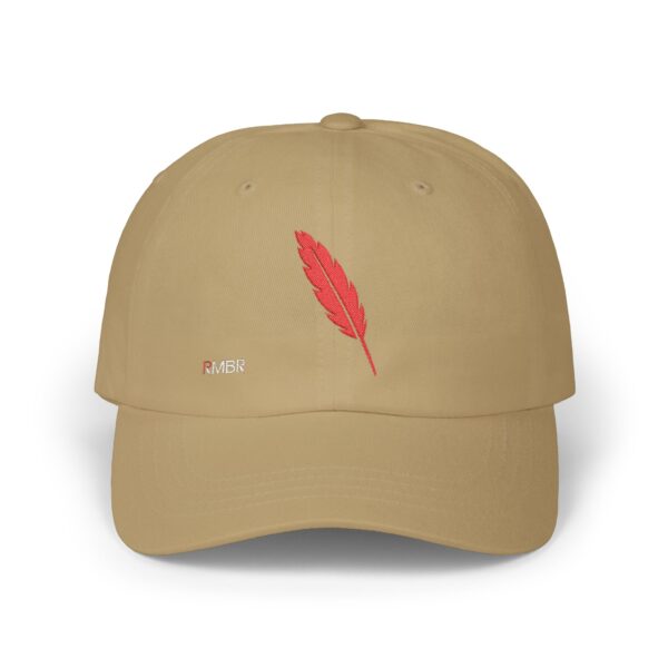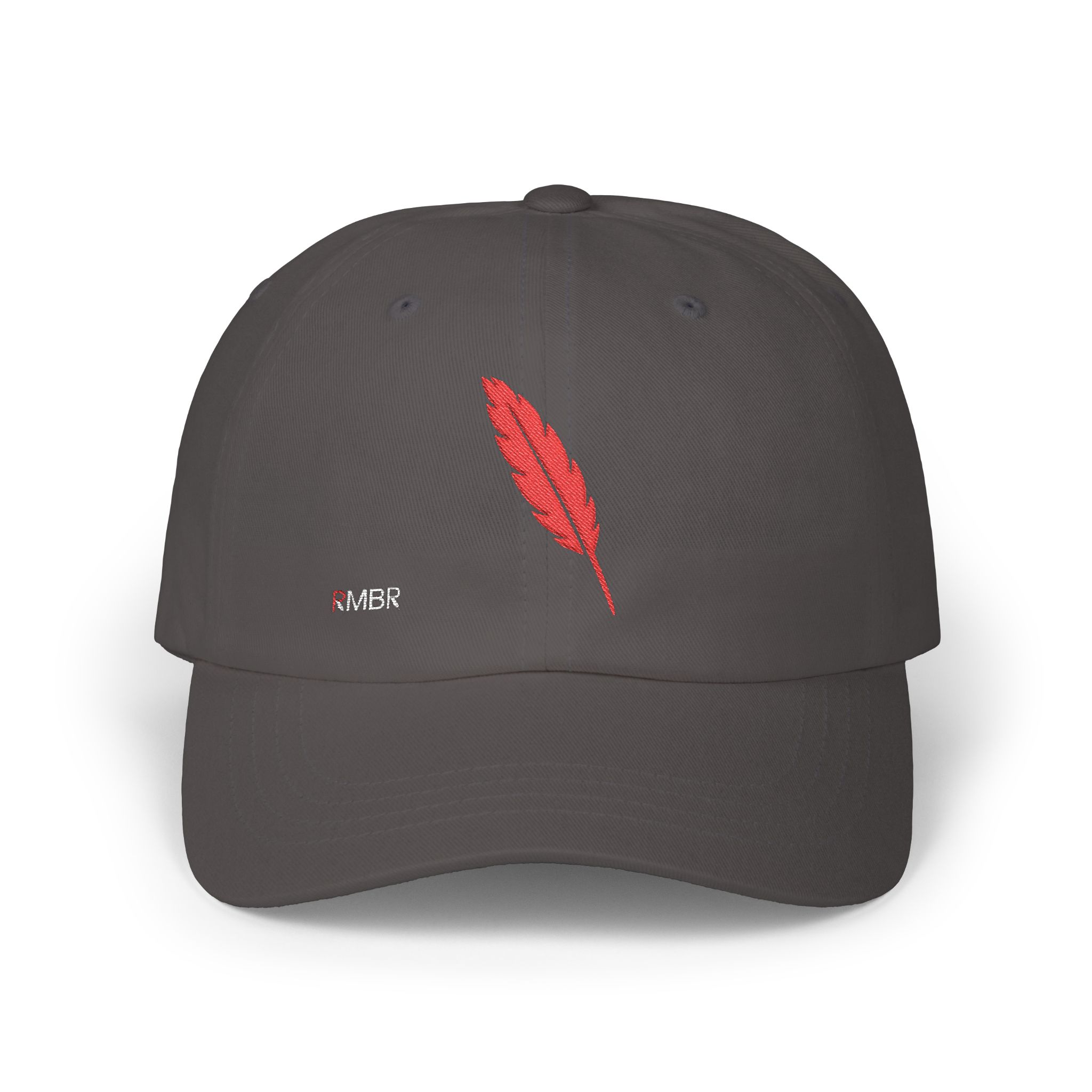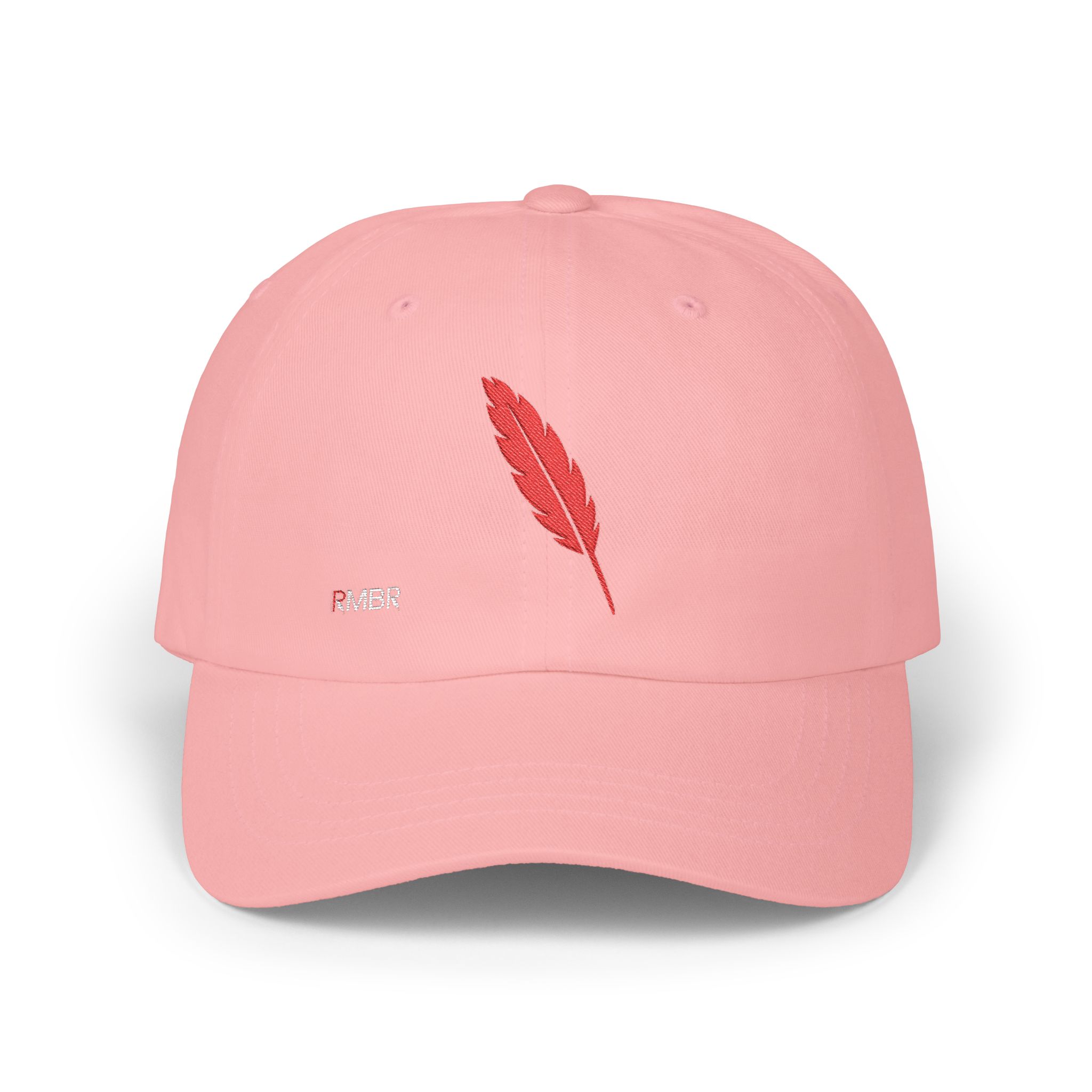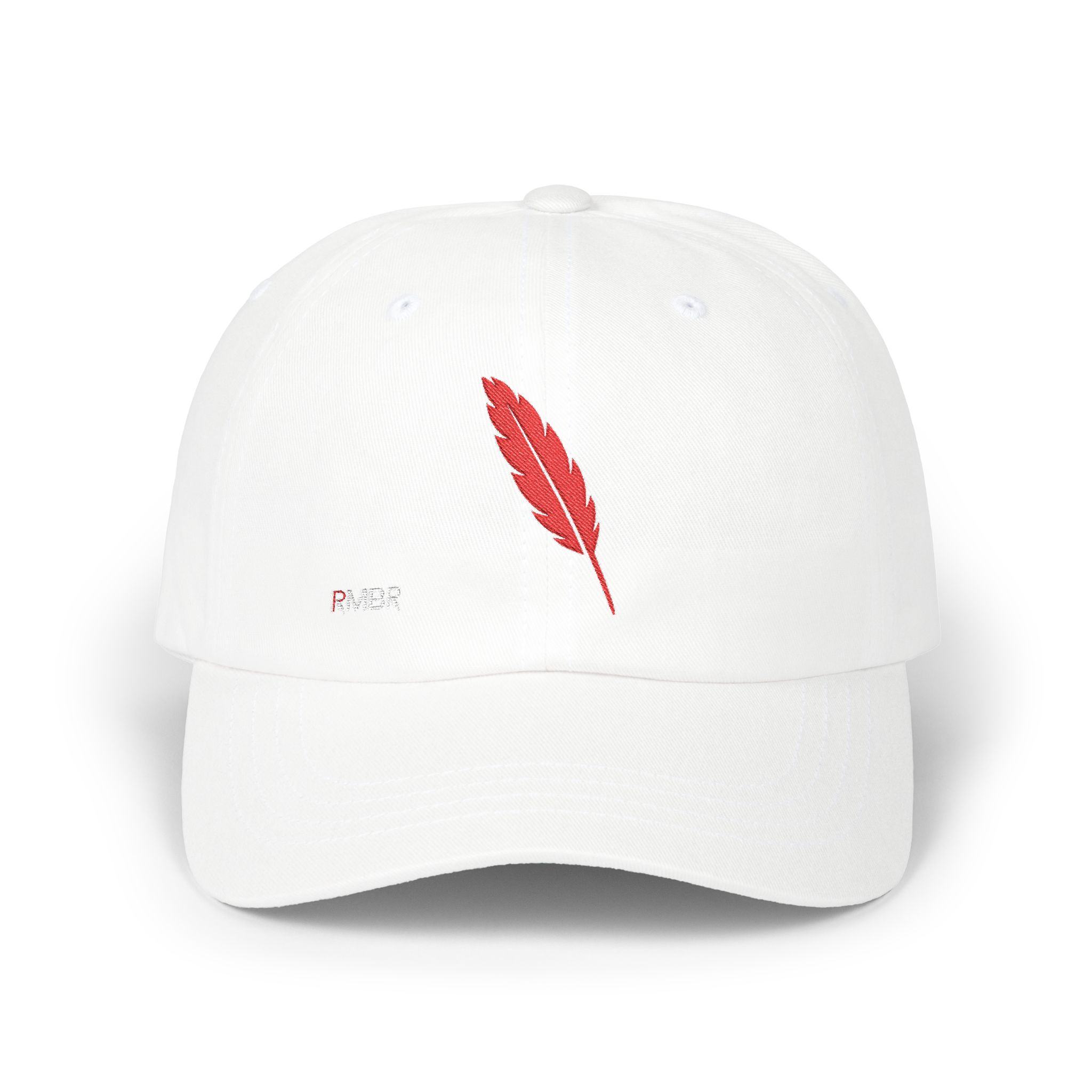 Introducing the Classic Dad Cap—a modern take on a timeless classic that proudly features the brand’s signature emblem. Crafted from a premium cotton blend, this cap boasts a durable five-panel construction for a structured yet relaxed fit. The standout detail is a single, meticulously stitched feather—RMBR’s iconic logo—symbolizing authenticity, natural elegance, and a nod to the brand’s heritage. Finished with an adjustable back strap for a personalized fit, this cap seamlessly blends vintage aesthetics with contemporary style, making it a subtle yet powerful statement piece for any casual look.