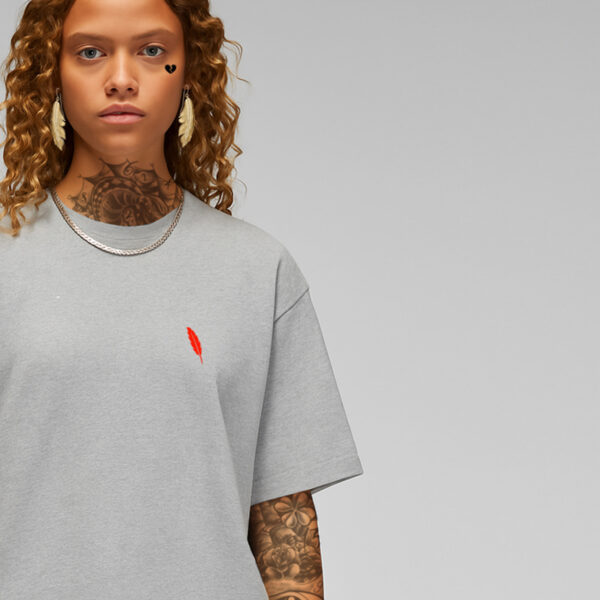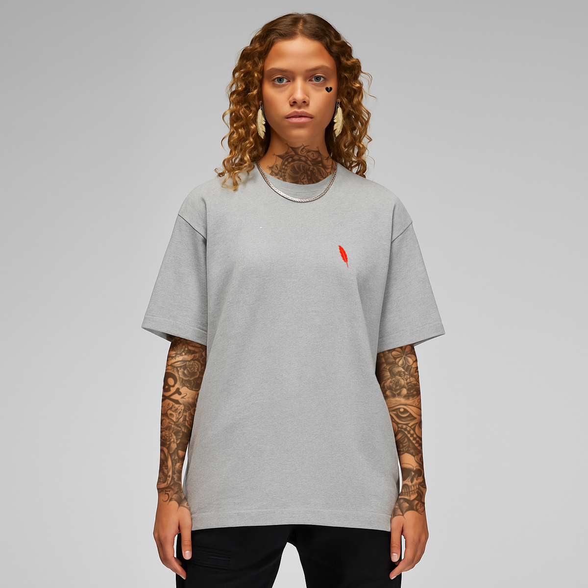 Our CLASSIC grey drop shoulder T-shirt features the iconic feather RMBR logo, representing the All American Lifestyle Brand. Oversized means comfort in style and this T-shirt passes the coziness test with flying colors. Made with 100% cotton, it feels timeless and fashionable, a piece that will never go out of style. Meanwhile the dropped shoulders along with the boxy fit, make it the perfect for everyday wear or special occasions. Make this CLASSIC top an essential part of your wardrobe.