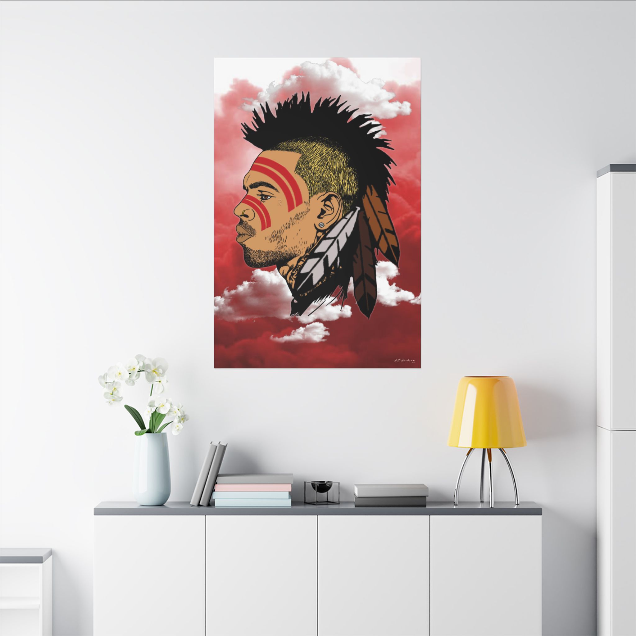 Introducing our remarkable COOL BREEZE tribute print, a powerful design that pays homage to the Pamunkey Tribe of Virginia, with a special tribute to Chris Brown as a tribe leader. This artwork showcases an inspiring portrayal of Chris Brown as a Pamunkey Tribe leader, representing strength, resilience, and cultural pride. Hang this picture proudly to celebrate the rich legacy of the Pamunkey Tribe and honor Chris Brown’s connection to their ancestral lineage.