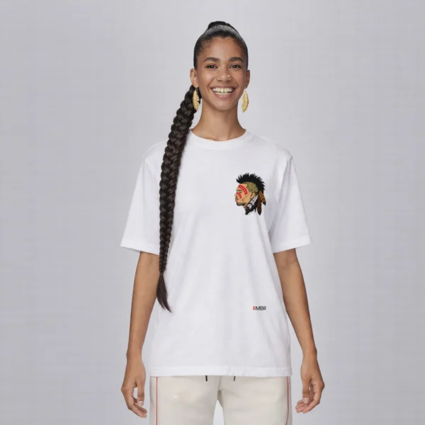 A tribute to the Pamunkey Tribe of Virginia and the unshakable cool of a modern-day chief. The COOL BREEZE tribute oversized T-shirt reimagines Chris Brown as a proud tribal leader—mohawked and marked, draped in dignity and fire. The front logo channels raw Pamunkey spirit with war paint, golden fade and mohawk dripped in feathers. Flip it over and you’ll find a fictional back ad for Still Blazing Pamunkey Storehouse—an unapologetic ode to “Guns, Rims & Vogues,” symbolizing protection, motion and prestige. This tee honors tradition, edge and the duality of being native and now.