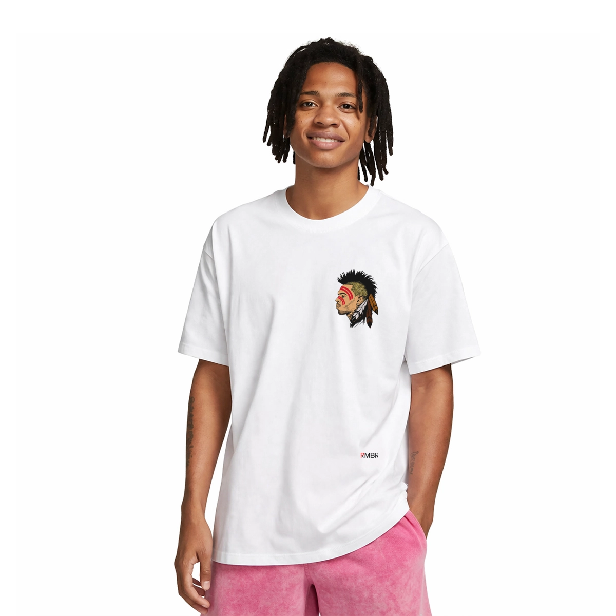 A tribute to the Pamunkey Tribe of Virginia and the unshakable cool of a modern-day chief. The COOL BREEZE tribute oversized T-shirt reimagines Chris Brown as a proud tribal leader—mohawked and marked, draped in dignity and fire. The front logo channels raw Pamunkey spirit with war paint, golden fade and mohawk dripped in feathers. Flip it over and you’ll find a fictional back ad for Still Blazing Pamunkey Storehouse—an unapologetic ode to “Guns, Rims & Vogues,” symbolizing protection, motion and prestige. This tee honors tradition, edge and the duality of being native and now.