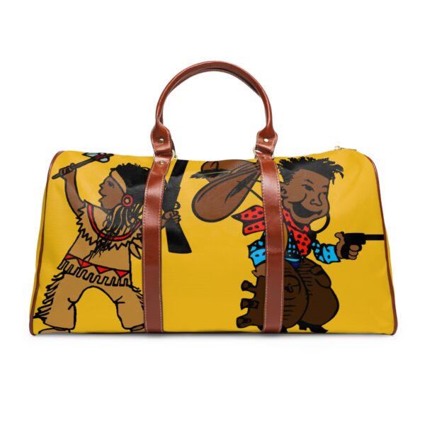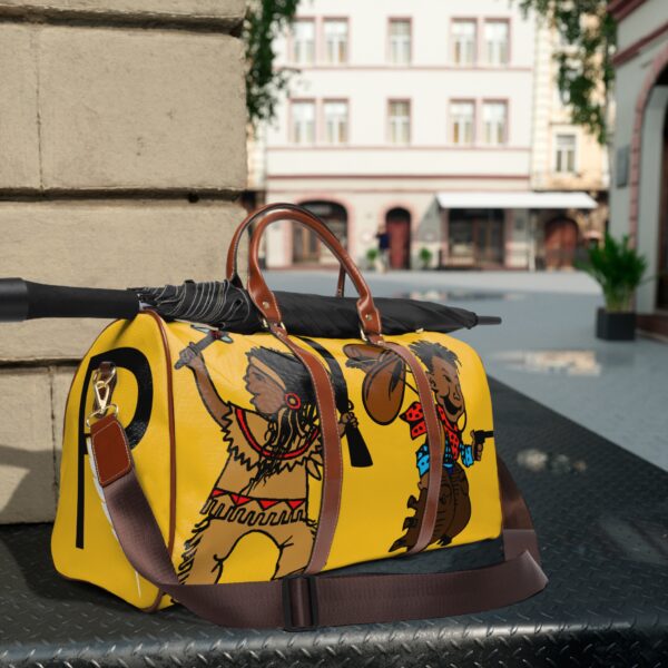 Introducing a versatile COWBOY AND INDIANS TRAVEL BAG that combines style and functionality for any journey. Its vibrant colors and unique all-over print make it a standout piece, perfect for the fashion-forward traveler. Made from high-grade nylon, it is not only durable but also lightweight, allowing you to travel with ease. Whether you’re heading to the gym, a weekend getaway or embarking on an adventurous vacation, this bag is designed to keep your belongings secure and dry. The adjustable shoulder strap and sturdy PU leather handles offer comfort while you carry it around. Ideal for those who embrace creativity and enjoy vibrant designs, this bag is perfect for travel enthusiasts, students and anyone who loves to explore. Great for holidays, birthdays or as a thoughtful gift for someone embarking on a new adventure!