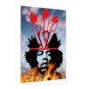 Introducing our powerful EMPIRE ON ATSILA (fire) artwork, a design that combines the iconic image of Jimi Hendrix wearing a Cherokee headdress with the embodiment of the Cherokee Nation. This unique fusion symbolizes the blend of musical genius and the spirit of freedom. It pays tribute to Jimi Hendrix’s Cherokee heritage while also capturing the essence of American Indian culture. This design serves as a powerful reminder of the interconnectedness between diverse cultures and the profound impact of artistic expression on shaping notions of freedom. Crafted with artistic vision and style, this print sparks conversations about cultural identity, heritage, and the pursuit of liberty. Hang EMPIRE ON ATSILA proudly to celebrate the indomitable spirit of Jimi Hendrix, honor the rich legacy of the Cherokee people, and embrace the inclusive and diverse nature of American culture. Let’s unite these symbols and inspire others to explore the beauty of cultural fusion and the power of artistic expression.