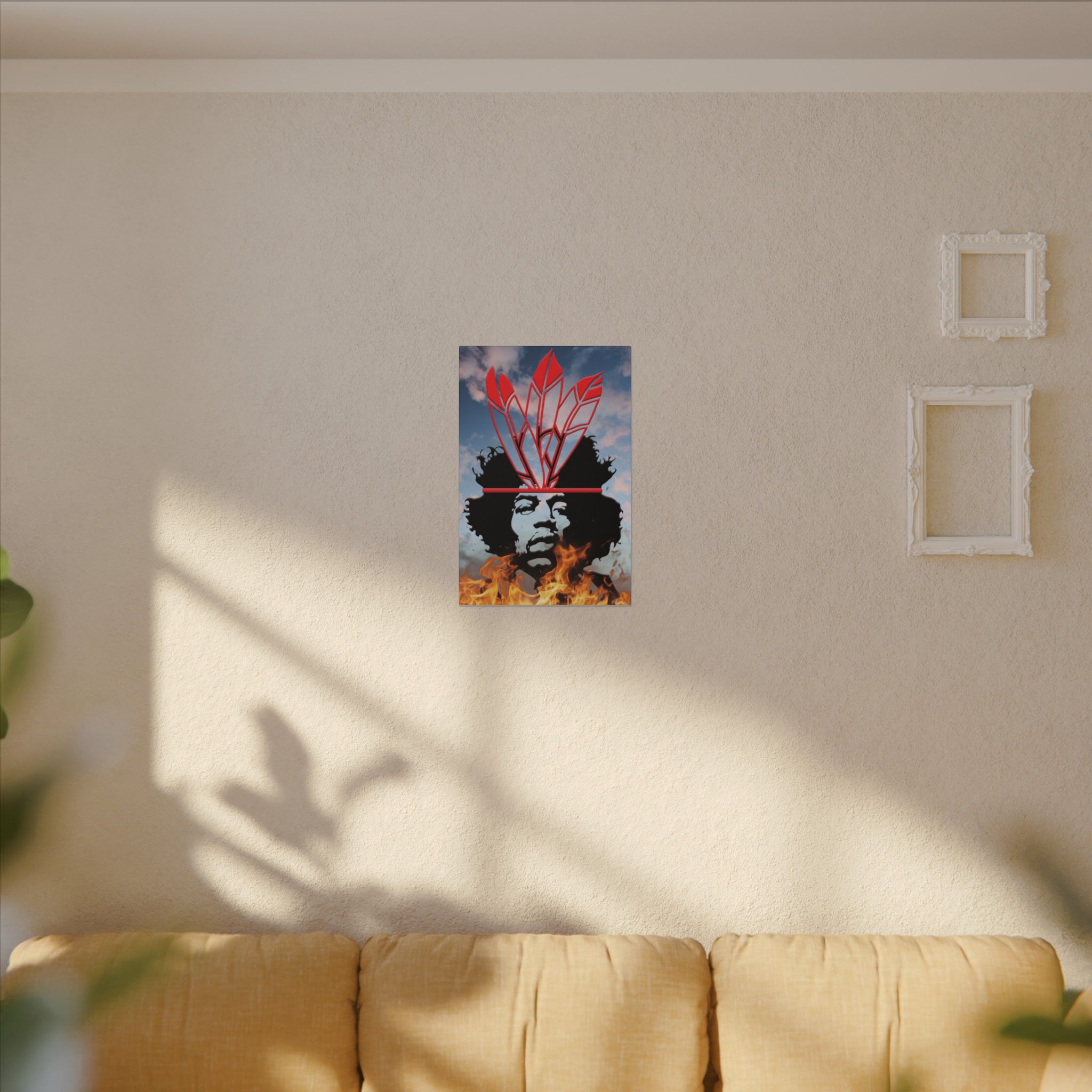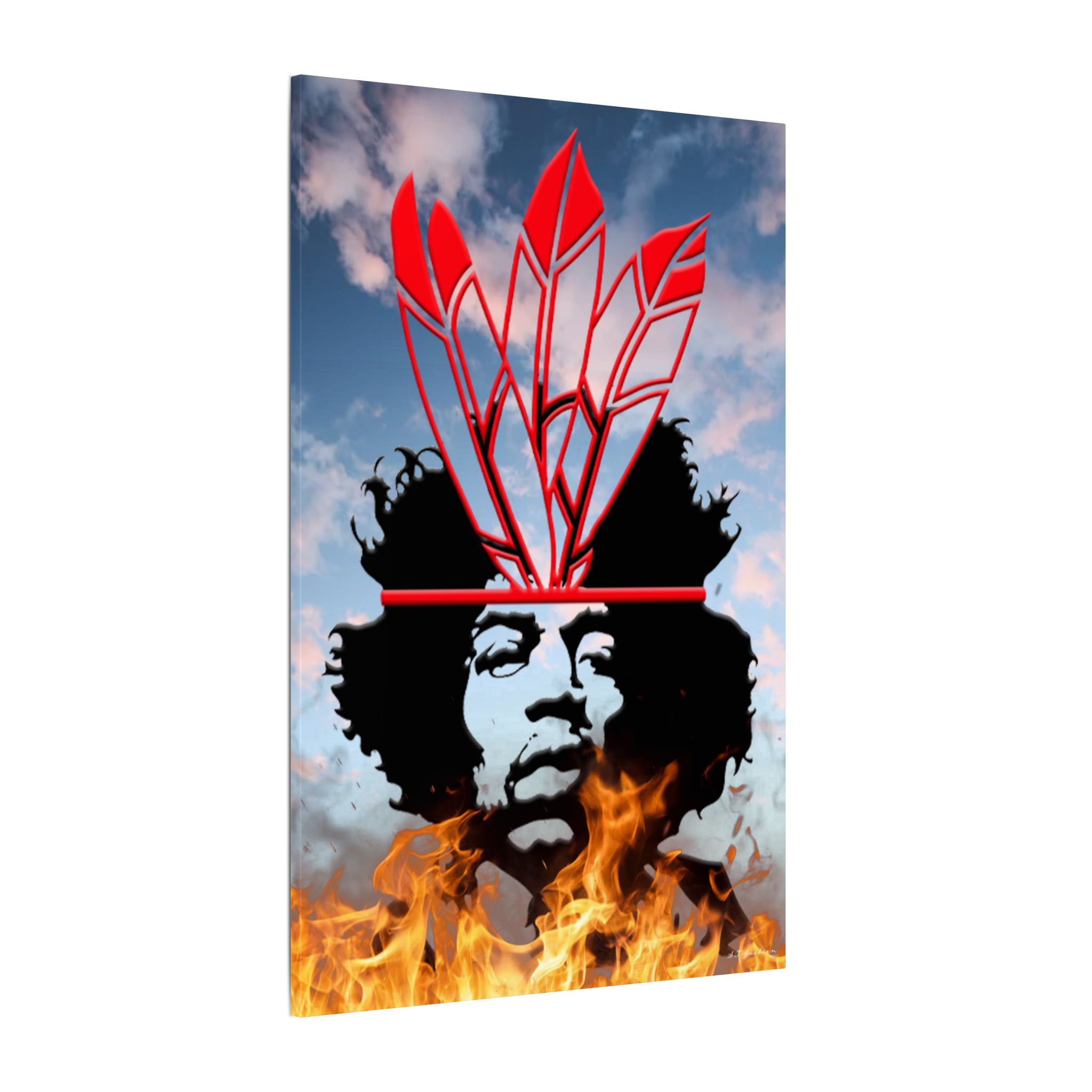 Introducing our powerful EMPIRE ON ATSILA (fire) artwork, a design that combines the iconic image of Jimi Hendrix wearing a Cherokee headdress with the embodiment of the Cherokee Nation. This unique fusion symbolizes the blend of musical genius and the spirit of freedom. It pays tribute to Jimi Hendrix’s Cherokee heritage while also capturing the essence of American Indian culture. This design serves as a powerful reminder of the interconnectedness between diverse cultures and the profound impact of artistic expression on shaping notions of freedom. Crafted with artistic vision and style, this print sparks conversations about cultural identity, heritage, and the pursuit of liberty. Hang EMPIRE ON ATSILA proudly to celebrate the indomitable spirit of Jimi Hendrix, honor the rich legacy of the Cherokee people, and embrace the inclusive and diverse nature of American culture. Let’s unite these symbols and inspire others to explore the beauty of cultural fusion and the power of artistic expression.
