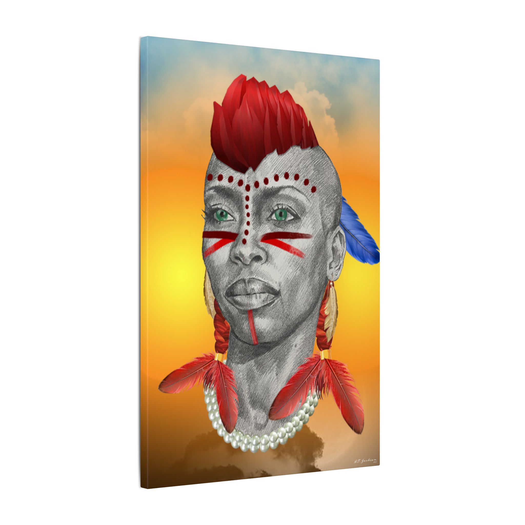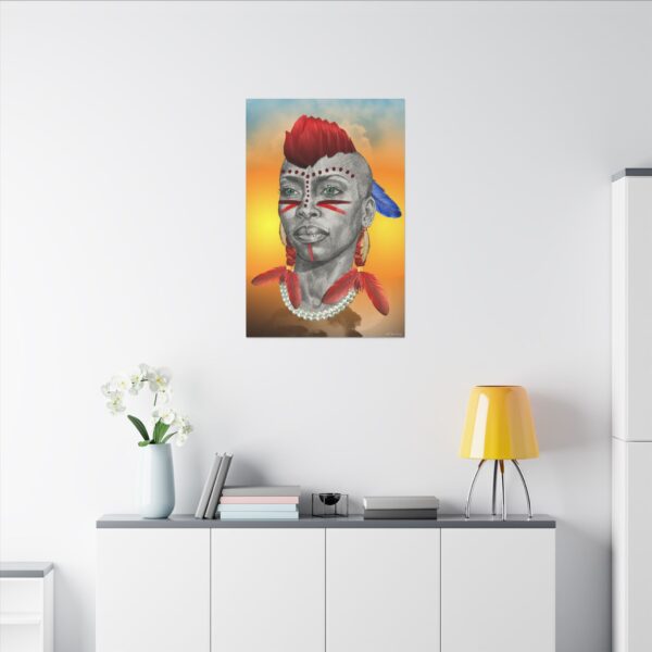 Get ready to be swept away by the enthralling cultural fusion with our captivating HIGH POWER tribute artwork to Erykah – a stunning masterpiece that transcends music, artistry and American Indian symbolism. This isn’t just a art; it’s a visual journey that pays homage to the lyrical genius, Erykah Badu, and seamlessly merges the worlds of music and American Indian heritage. Imagine this: the legendary face of Erykah Badu adorned with an American Indian headdress. HIGH POWER is an invitation to celebrate the beauty that emerges when different cultures collide in harmony. It’s exciting, it’s thought-provoking, and it’s a testament to the power of music and cultural inclusivity!