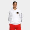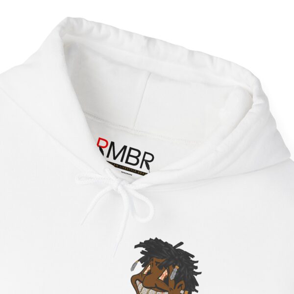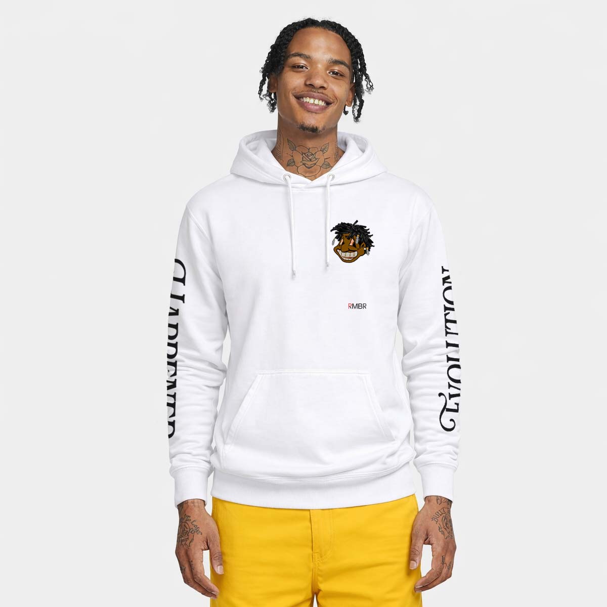 The HOT BOY hoodie is a bold visual reclamation. It flips one of America’s most controversial caricatures—the old Cleveland Indians mascot—into something entirely different: a modern, unapologetic young American Indian, represented through the lens of the Black American experience. No longer a cartoon created to mock Indigenous people, this character is reimagined as someone fully aware of who s/he is, where he comes from and what history tried to erase. The figure’s fiery eyes, diamond-studded grin and untamed hair speak to something deeper than style—they symbolize survival after centuries of forced transformation. For generations, the people of Turtle Island were pushed through identity after identity. Indigenous nations were displaced, renamed and categorized by colonial systems that attempted to redefine them. Communities that once lived as sovereign peoples were forced into new labels: “Indian,” then “colored,” then “Negro,” then “Black,” each classification imposed by outside authority attempting to control how a people understood themselves. But identity has memory.