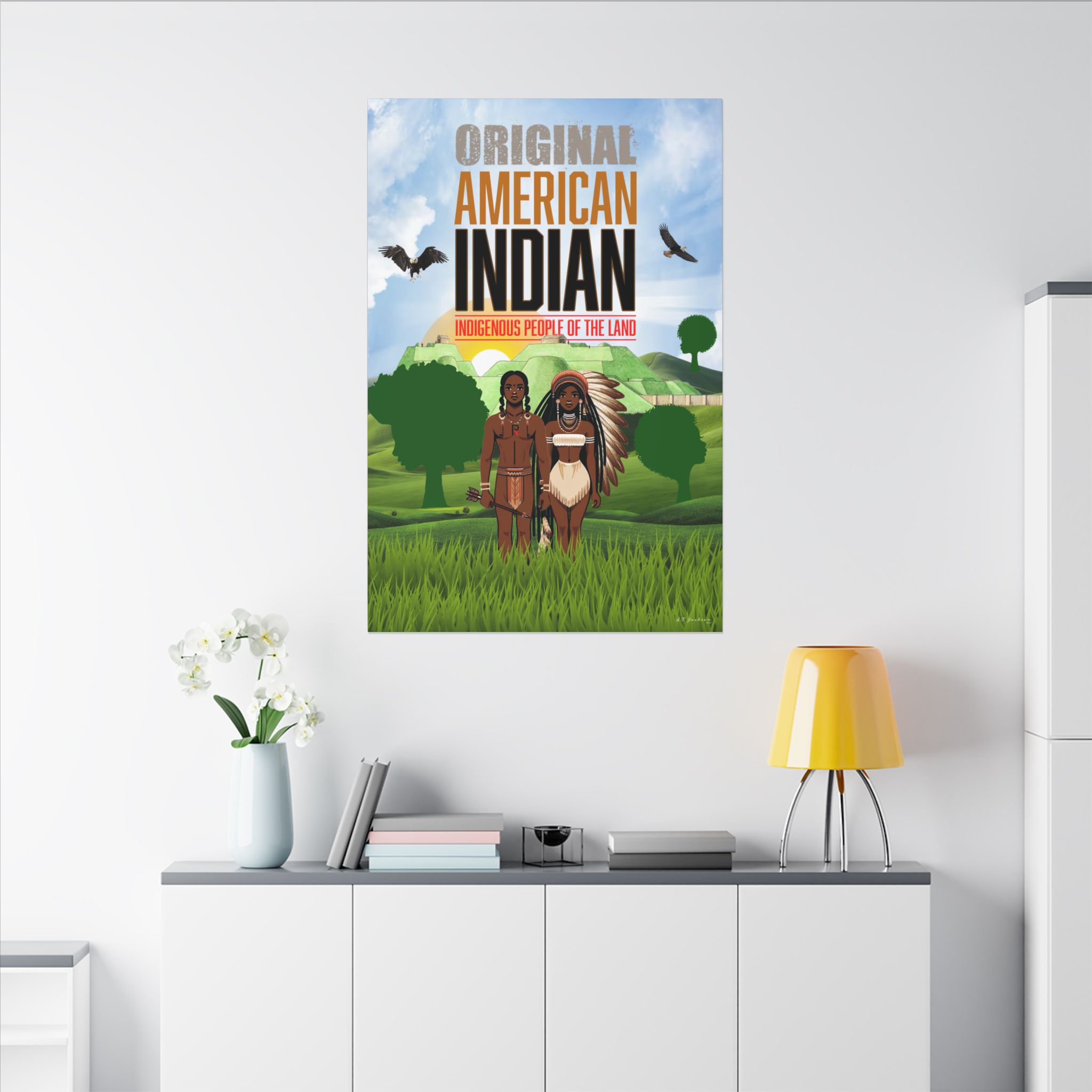 Introducing I AM, a powerful statement that challenges conventional narratives and proclaims the truth that African Americans are the American Indians, despite being rebranded in history books. This print seeks to shed light on the complex history of the American Indian, emphasizing their indigenous connections as mound builders and the being copper colored the pilgrims wrote about. Crafted with a sense of pride and purpose, this print symbolizes a reclaiming of identity, recognition of heritage and the importance of rewriting the narrative. Hang this artwork proudly to spark conversations, encourage historical exploration and promote a more inclusive understanding of the multifaceted identities within the African American community. I AM serves as a reminder that history is often nuanced and that understanding the full scope of our collective heritage is crucial for a more comprehensive and accurate account of our shared past.