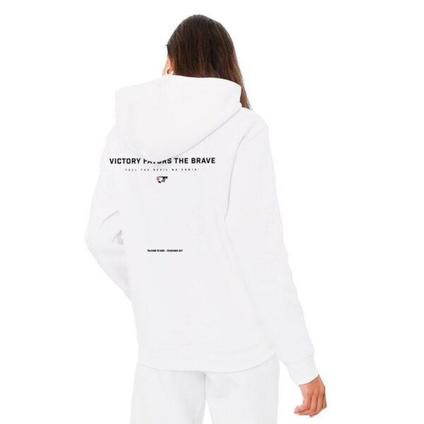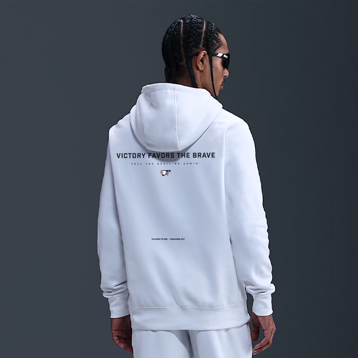 The PEACE AND ORDER oversized hoodie is a bold tribute to heritage, protection and the unshakable bond between the American Indian (Black American) identity and the land. The front graphic — a fearless, childlike warrior brandishing a tomahawk and revolver — reclaims the historical nickname “Son of a Gun”, once used to describe Indigenous resistance to colonization. The back reinforces this warrior ethos with the phrase “Victory Favors the Brave” and the warning “Tell the Devil We Comin’”—a spiritual and ancestral call to arms. Bottom of shirt back, the phrase “Talking to God > Crashing Out” centers the deeper truth: survival and divine alignment outweigh destruction.