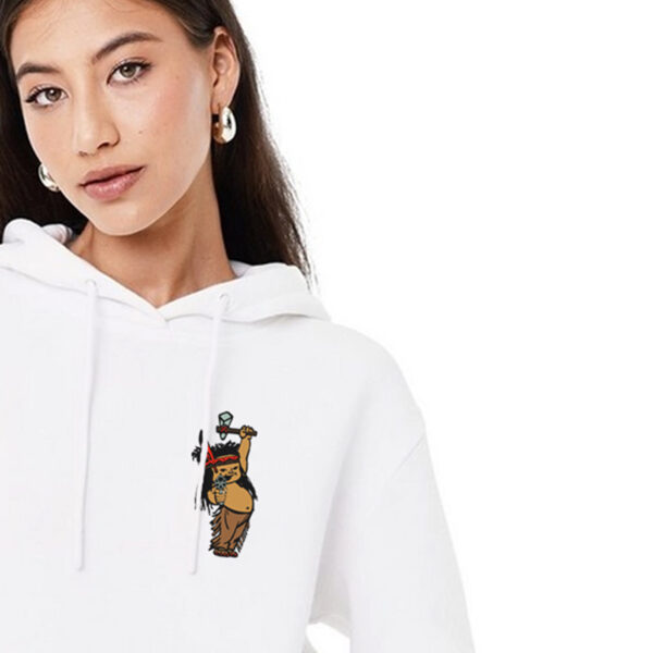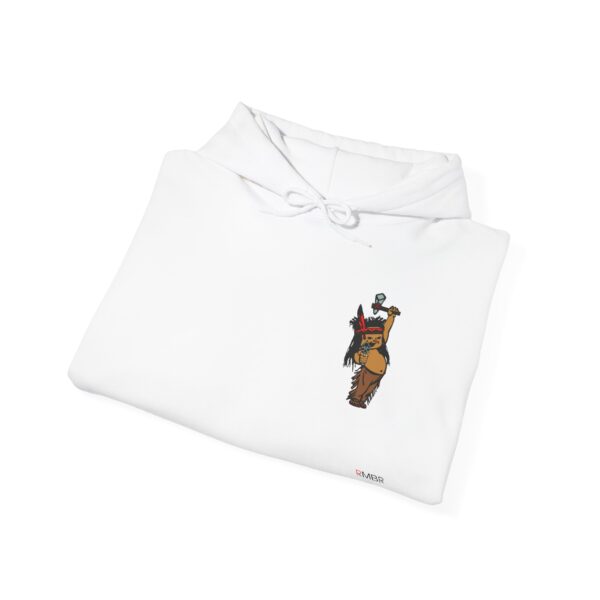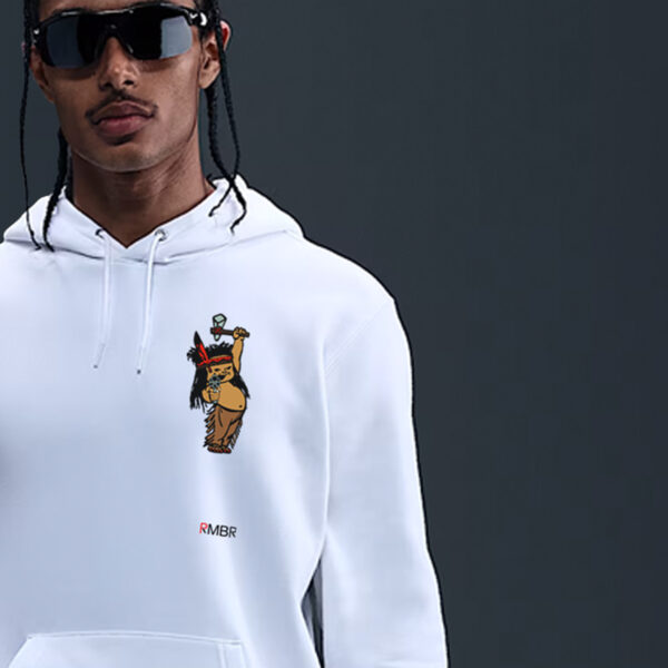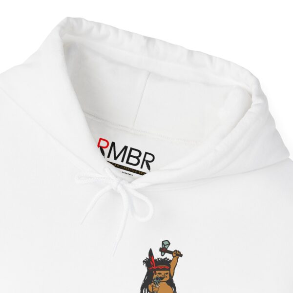 - Front Graphic: Child warrior with tomahawk and revolver — defiant and grounded in ancestral pride