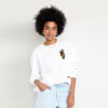 – Dropped shoulders create a stylish, relaxed silhouette.