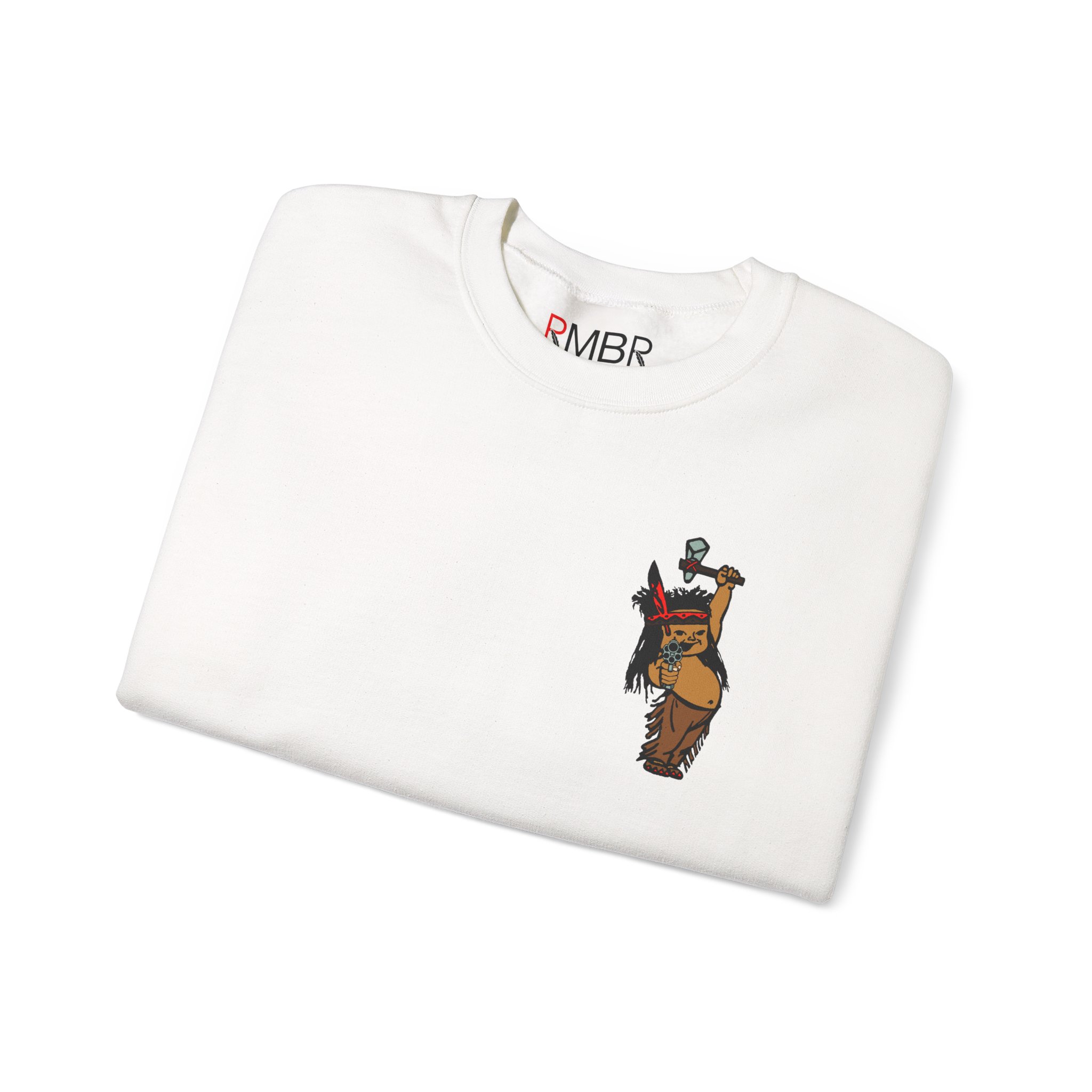 • Front Graphic: Child warrior with tomahawk and revolver — defiant and grounded in ancestral pride