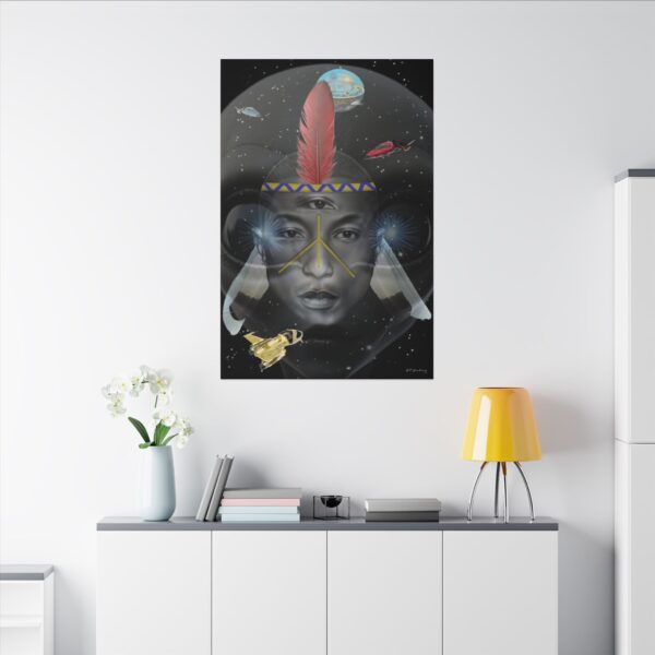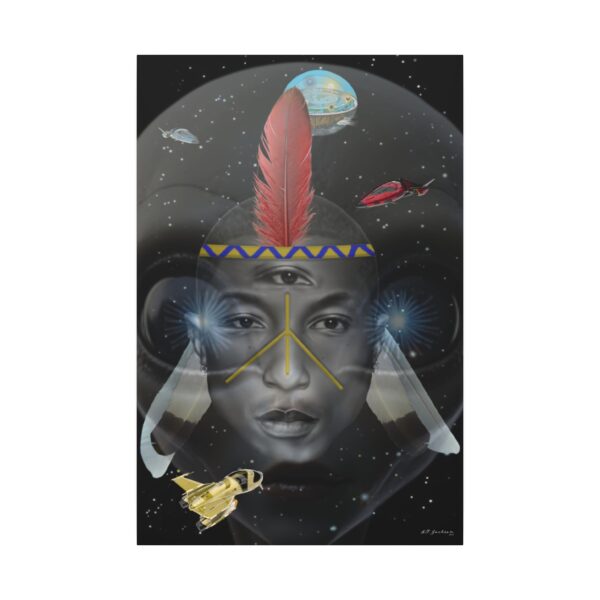 Introducing PHARELIEN, a tribute to the Tidewater Area’s very own Pharrell Williams. We reimagined P, as a ancient futuristic American Indian, juxtaposed in front of alien with the Flat Earth in the background and flying positioned all around. This unique and visionary design captures the essence of innovation and cultural heritage. Crafted with artistic flair and style, PHARELIEN symbolizes the boundless potential of cultural fusion and the enduring spirit of creativity, all things are on the table nowadays. Hang it proudly to showcase your appreciation for Pharrell Williams’ groundbreaking work and to ignite conversations about the limitless possibilities of art, culture and beyond. Let PHARELIEN inspire you to embrace our blend of tradition and innovation, celebrating the evolution of creativity in an ever-changing world, we know the huemans have finally waken up!
