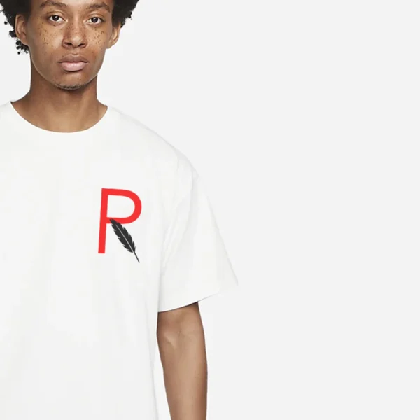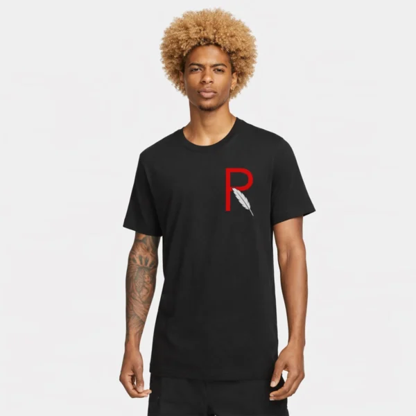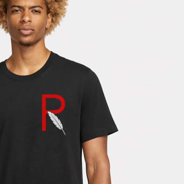 - Chest Emblem: Bold red “R” with black feather symbolizing remembrance and honor