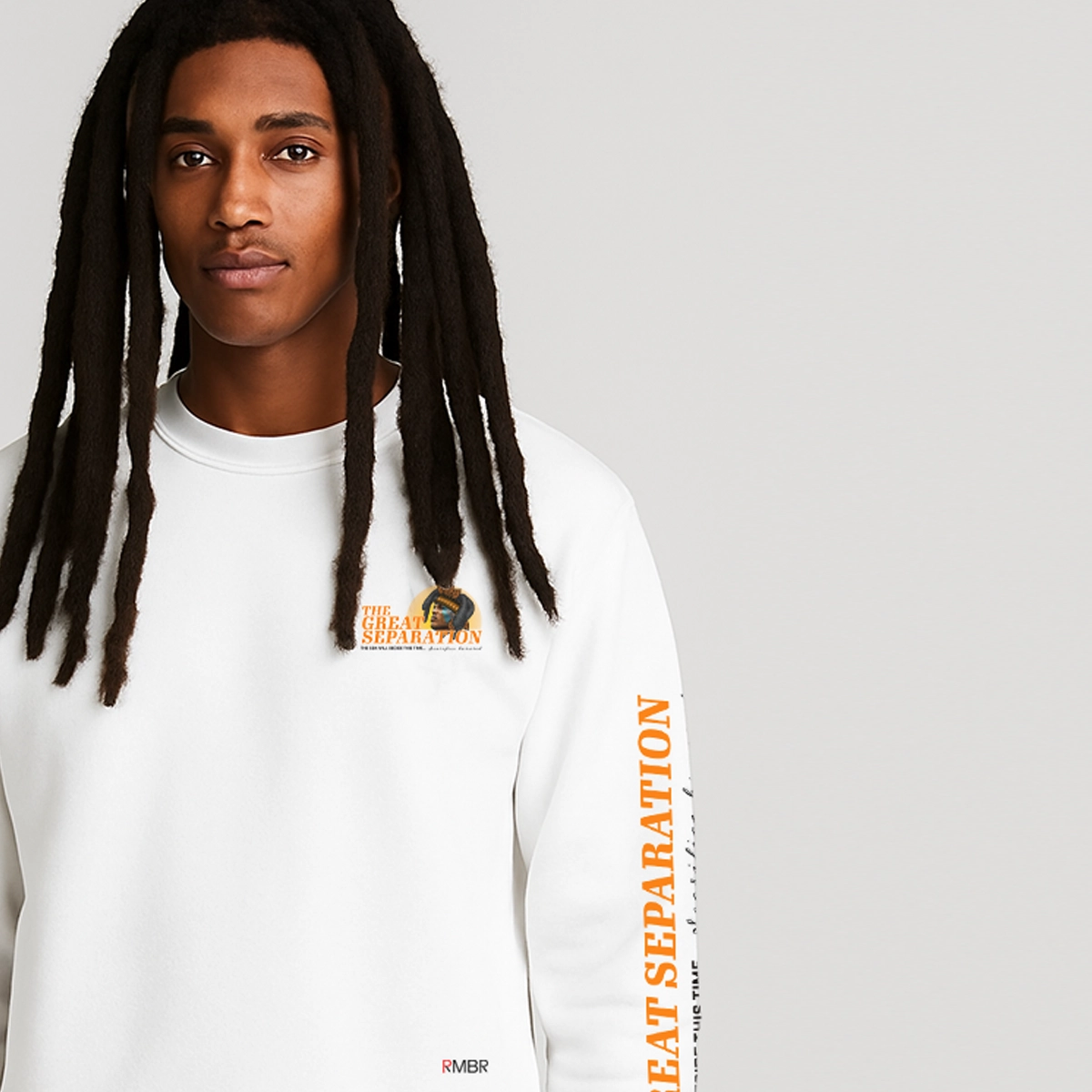 This sweatshirt captures that exact moment of tension. The silhouette artwork shows two figures beneath a blazing sun—connected, yet already drifting into separation. The warm orange glow represents passion, energy, desire and the quiet danger of intensity. The tree becomes symbolic too: shade = protection, limitation, survival, sunlight = exposure, growth, risk and right in between them is the question where do you stand? This piece is designed as official New Timeline Film merchandise, meaning it does more than look good—it extends the story into real life. When someone wears THE GREAT SEPARATION tee, they’re not just wearing art—they’re wearing a scene from the film, a philosophical question, a conversation starter and a reflection of their own experiences with love and timing. This is how RMBR wins—you’re not selling clothing, you’re selling narratives people see themselves in. Crafted for both presence and comfort. Oversized silhouette — modern, relaxed, intentional, mediumweight cotton — structure that holds its shape, soft interior feel — wearable all day. Perfect for layering or standing alone as a centerpiece This isn’t fast fashion. This is story-driven streetwear. RMBR: Some love stories aren’t meant to end… they’re meant to separate. Let the sun decide.