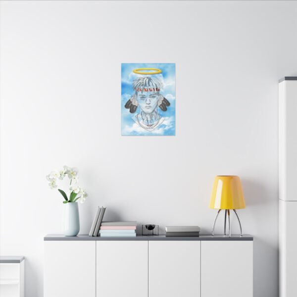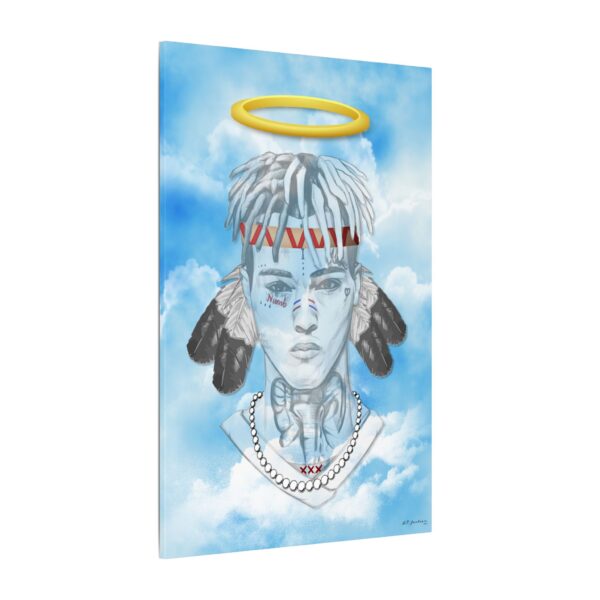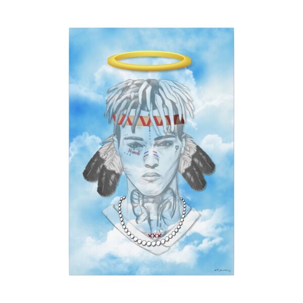 This unique THE INDIGO artwork pays tribute to XXX, the influential rapper and artist Jahseh Onfroy. Known for his raw and emotionally charged music, XXX left an indelible mark on contemporary culture. This print celebrates his claim of being an Indigo Child and honors his American Indian heritage, highlighting the beautiful traits of the aboriginal people of the Americas. This canvas print showcases the enduring spirit and culture of indigenous people through special children. Jahseh Onfroy was one of those special people, sent to leave a message, lead fearlessly, and show up as an example of living with your heart. Despite the controversies in his life, XXX’s impact on youth culture cannot be denied. His authenticity and willingness to confront the darker aspects of life continue to resonate through today’s music and art. Hang this art with pride to show your appreciation for the culture of the indigenous people of the Americas and honor the legacy of XXX.