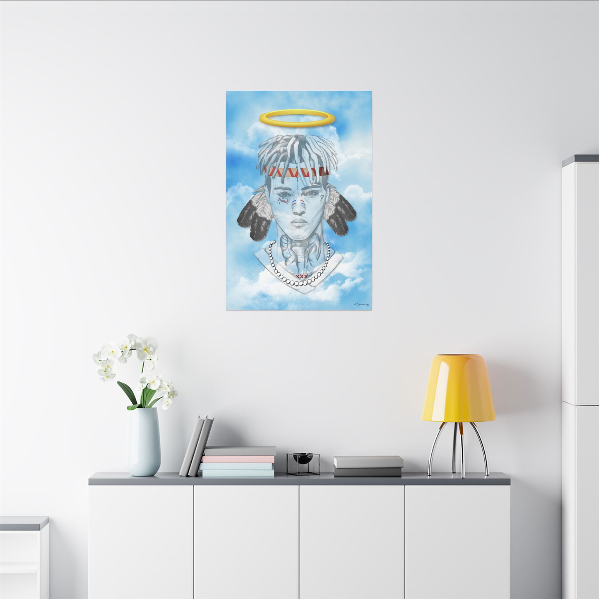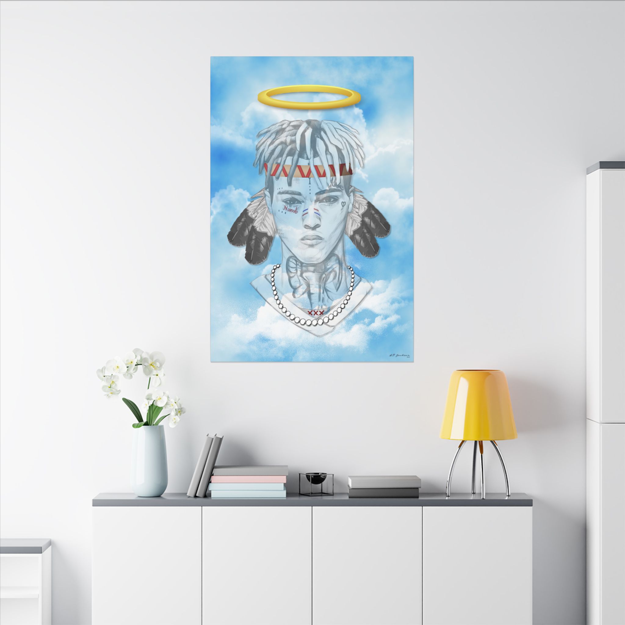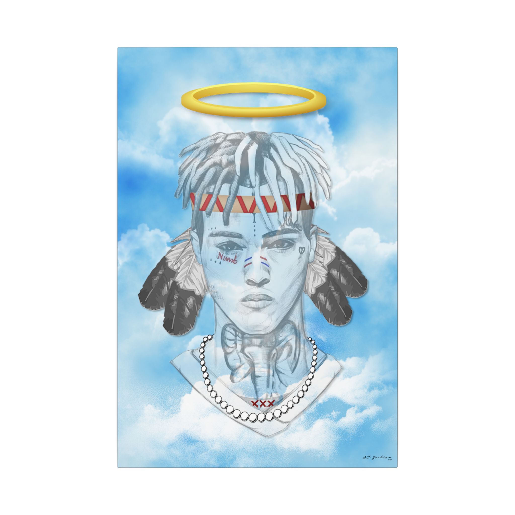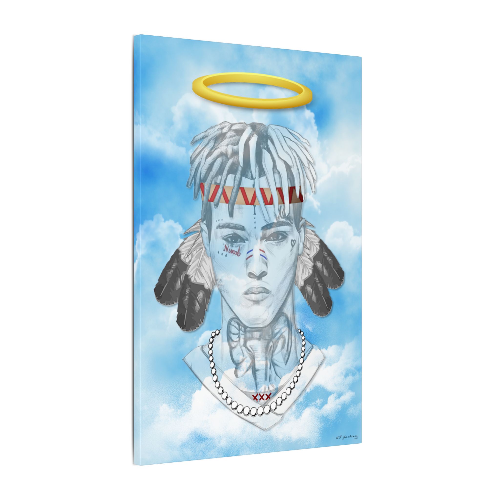 This unique THE INDIGO artwork pays tribute to XXX, the influential rapper and artist Jahseh Onfroy. Known for his raw and emotionally charged music, XXX left an indelible mark on contemporary culture. This print celebrates his claim of being an Indigo Child and honors his American Indian heritage, highlighting the beautiful traits of the aboriginal people of the Americas. This canvas print showcases the enduring spirit and culture of indigenous people through special children. Jahseh Onfroy was one of those special people, sent to leave a message, lead fearlessly, and show up as an example of living with your heart. Despite the controversies in his life, XXX’s impact on youth culture cannot be denied. His authenticity and willingness to confront the darker aspects of life continue to resonate through today’s music and art. Hang this art with pride to show your appreciation for the culture of the indigenous people of the Americas and honor the legacy of XXX.
