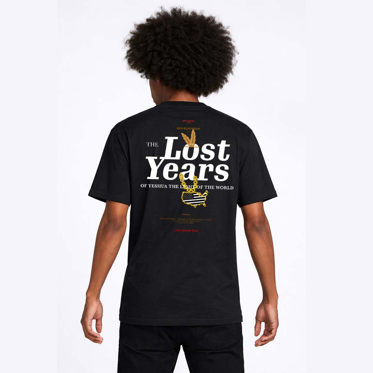 THE LOST YEARS challenges the mainstream portrayal of Yeshua by placing him within an Indigenous American and African lineage — reclaiming both spiritual history and ancestral voice. This design encourages critical thinking, cultural pride and deeper dialogue about the stories we inherit. It’s not just fashion — it’s cinematic, theological and revolutionary. Presented by NEW TIMELINE FILMS Ben Blackman is Yeshua. You are the Light.