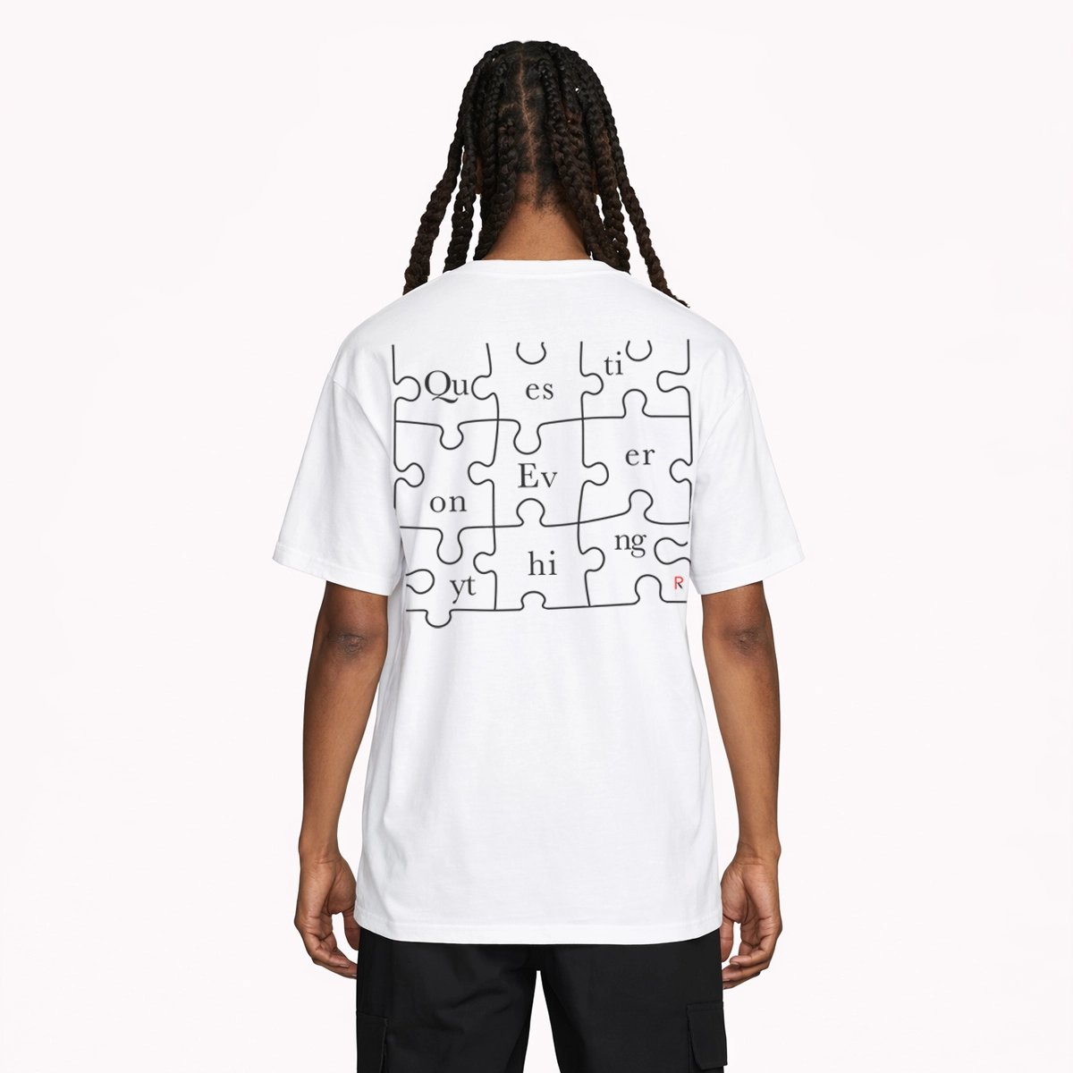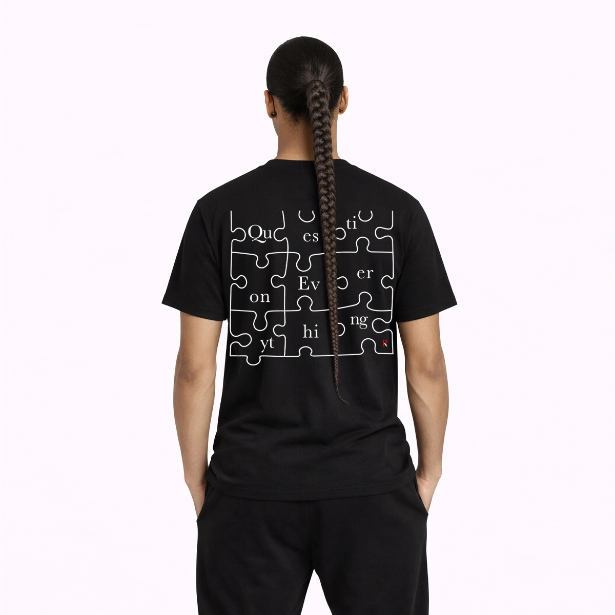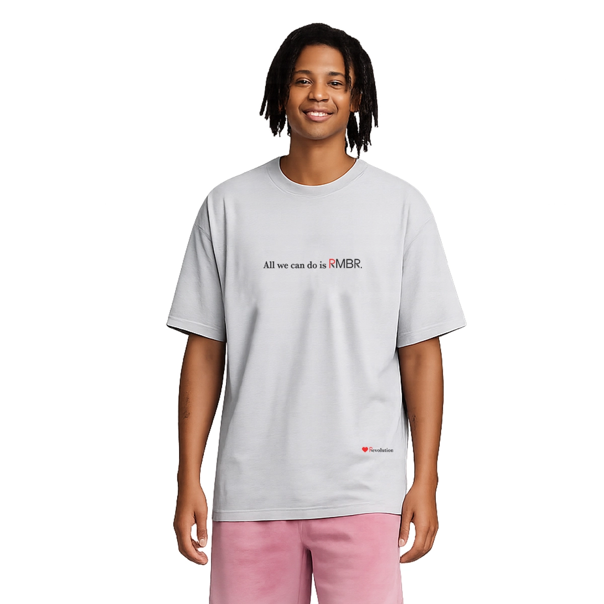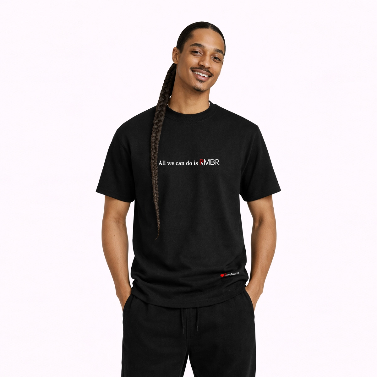 The TRU tee is built on a simple but powerful idea, what we’ve been told isn’t always what is and remembrance is the first to clarity. On the front, the message is quiet but loaded, “All we can do is RMBR”. A reminder that history isn’t lost, it’s been buried, reshaped and rewritten. Your job isn’t to accept it…your job is to remember it. Placed subtly on the lower edge, “Love Revolution” shifts the tone. This isn’t about anger, it’s about awakening. TRU, delivered through love, is the most disruptive force there is. Then you turn it around and the back speaks louder. A fragmented puzzle holds the phrase, “Question Everything.” Broken into pieces just like history, identity and truth itself. Nothing is handed to you whole, you have to put it together. Each puzzle piece represents lost narratives, distorted timelines and pieces of identity scattered across generations. And right there, tucked in the corner is the RMBR “R” the signature that ties it all back together.