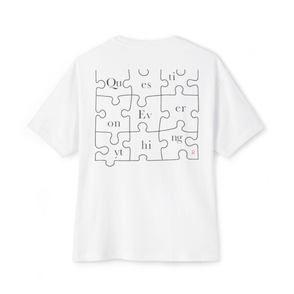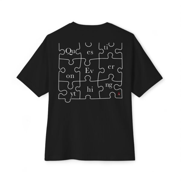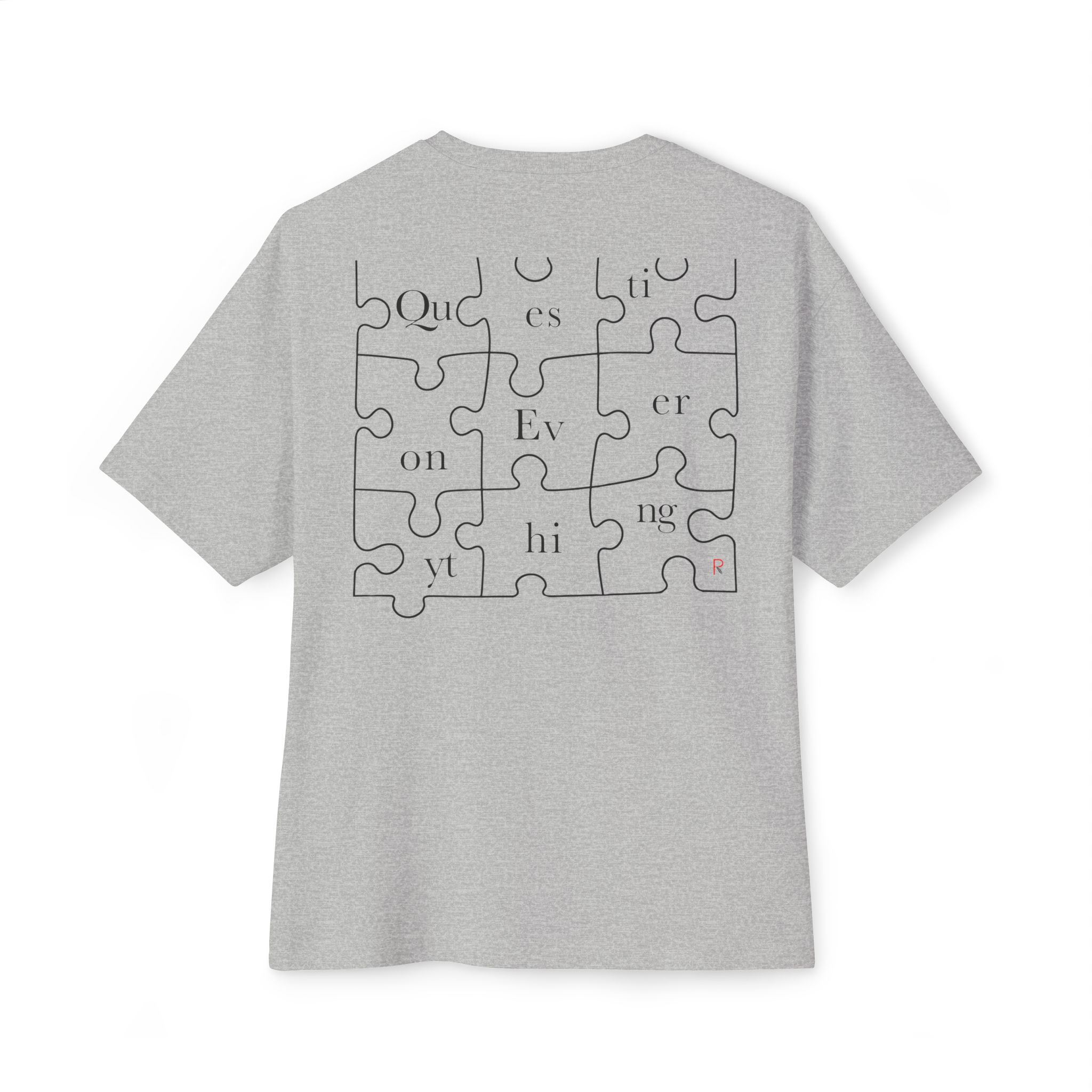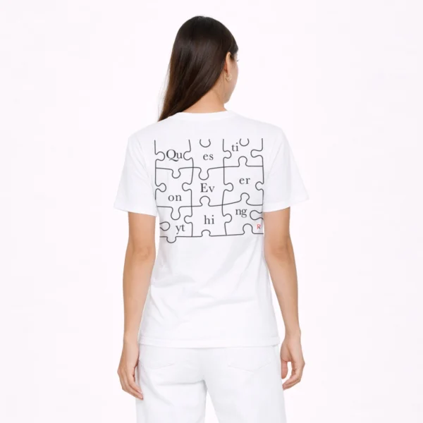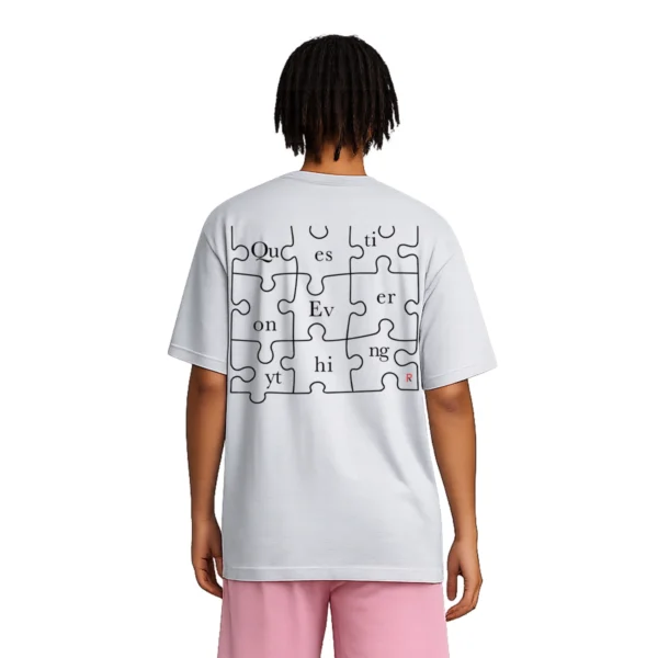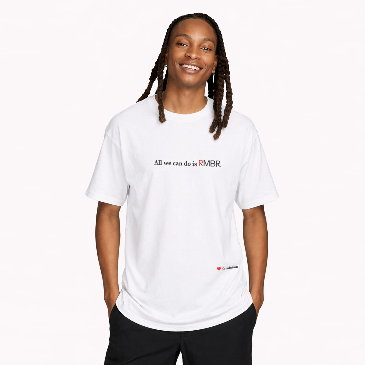 The TRU tee is built on a simple but powerful idea, what we’ve been told isn’t always what is and remembrance is the first to clarity. On the front, the message is quiet but loaded, “All we can do is RMBR”. A reminder that history isn’t lost, it’s been buried, reshaped and rewritten. Your job isn’t to accept it…your job is to remember it. Placed subtly on the lower edge, “Love Revolution” shifts the tone. This isn’t about anger, it’s about awakening. TRU, delivered through love, is the most disruptive force there is. Then you turn it around and the back speaks louder. A fragmented puzzle holds the phrase, “Question Everything.” Broken into pieces just like history, identity and truth itself. Nothing is handed to you whole, you have to put it together. Each puzzle piece represents lost narratives, distorted timelines and pieces of identity scattered across generations. And right there, tucked in the corner is the RMBR “R” the signature that ties it all back together.