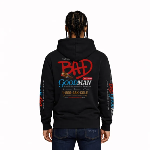 - Back: A fictional ad for Mister Bad Goodman Conflict Resolution Services — where international, domestic and street issues meet poetic justice and humor.