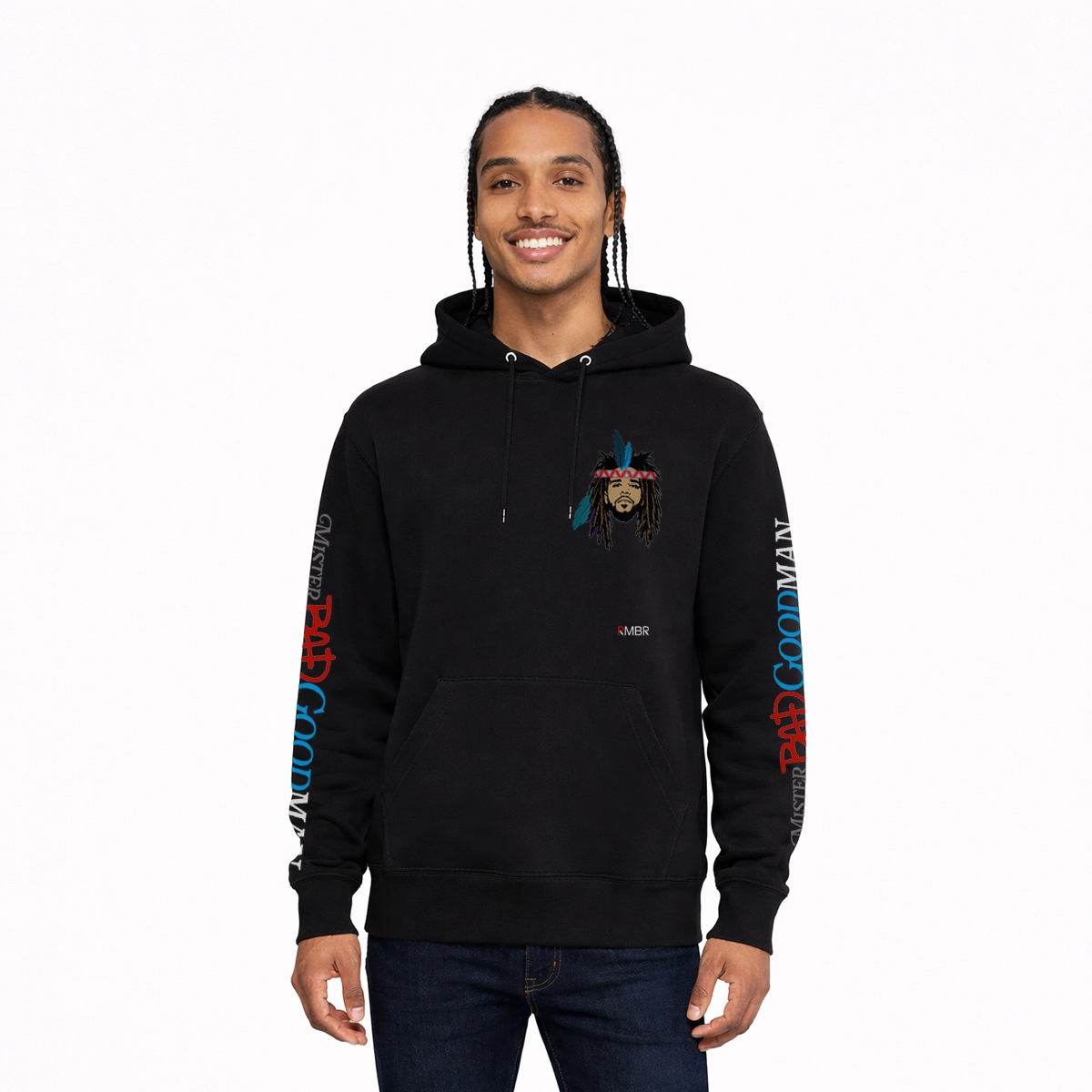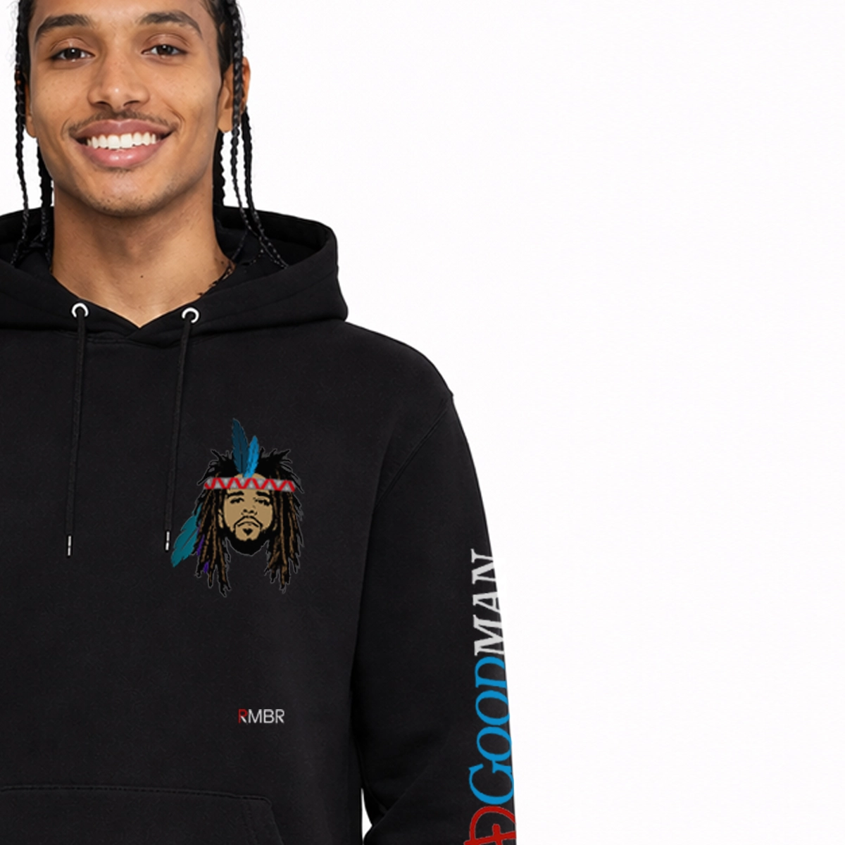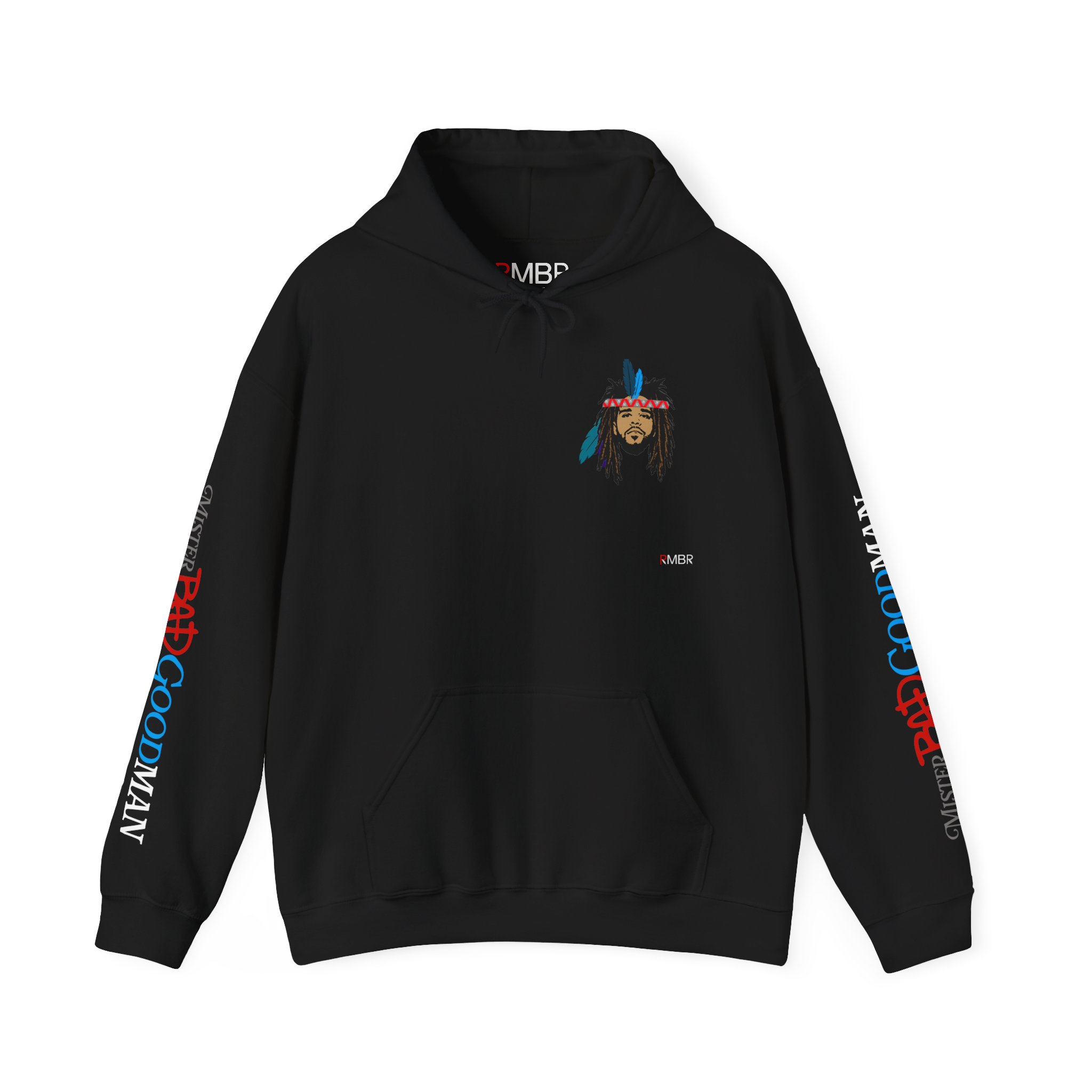 Channel the fire of the wolf and the wisdom of the ancestors with WOLFPACK COALFIRE, an drop shoulder tribute hoodie that reimagines J. Cole through the lens of American Indian heritage. The front design features Cole’s iconic likeness adorned with feathers and a headband marked with the RMBR logo — a bold symbol of fusion between lyrical artistry and cultural legacy.