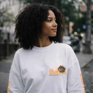 The sweatshirt adds weight—physically and emotionally. Medium weight fabric, stronger presence and built for layering and colder environments. It mirrors the concept of comfort within separation—holding onto warmth even when things shift.